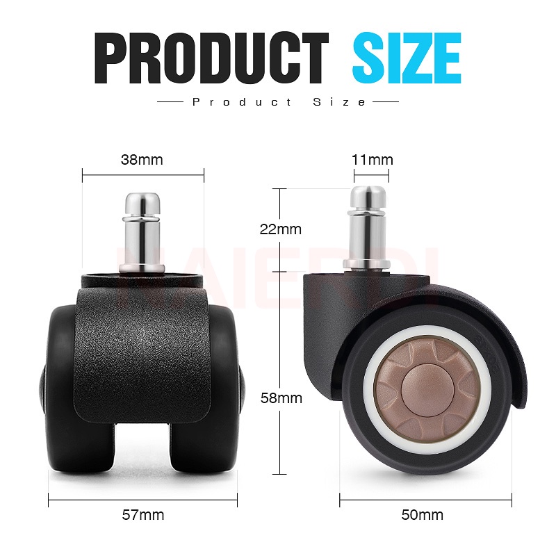 NAIERDI Office Chair Caster 2" TPR Rubber Soft Wheel Heavy Duty Caster for Universal Desk Chair Safe Roller Furniture Wheel Hardware