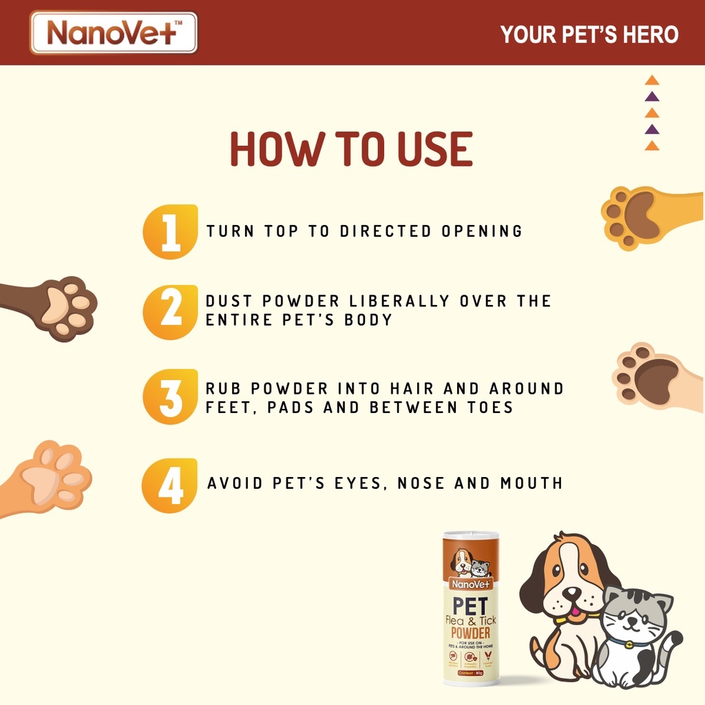 NANOVET Pet Flea & Tick Powder For Cats & Dogs 80G
