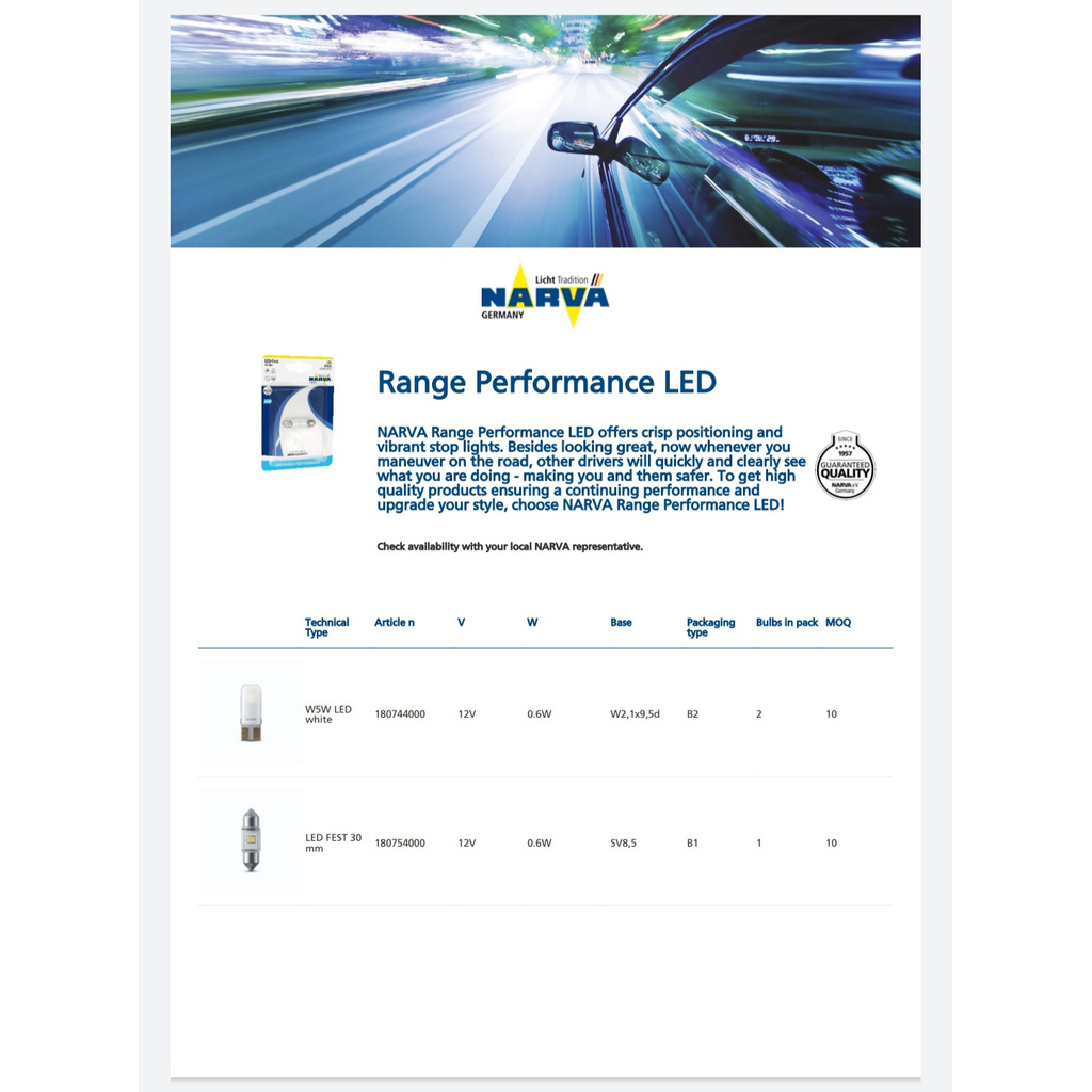 NARVA Festoon 30mm 12V Range Performance LED Interior Light Bulb