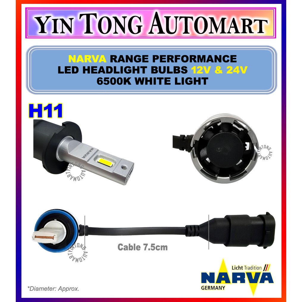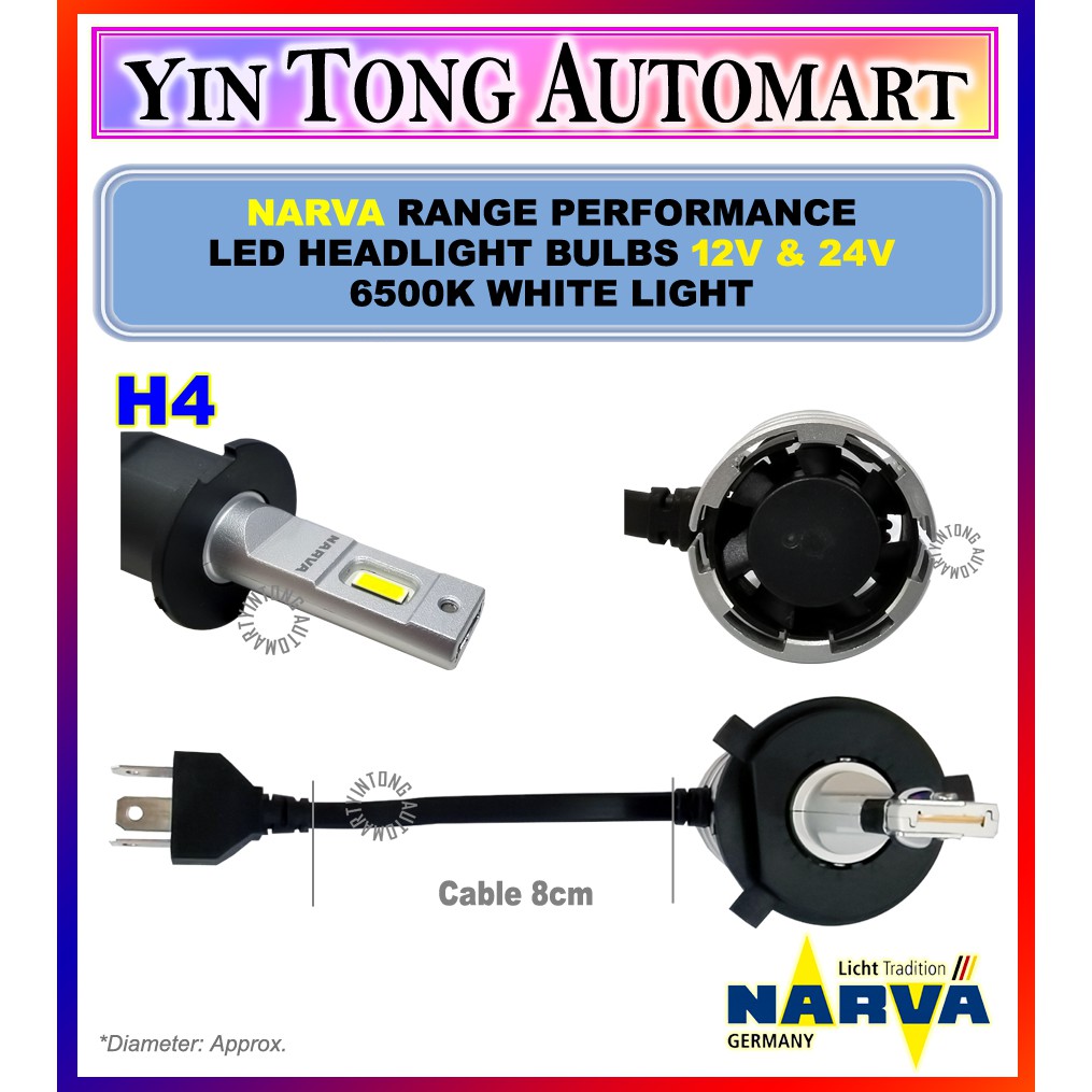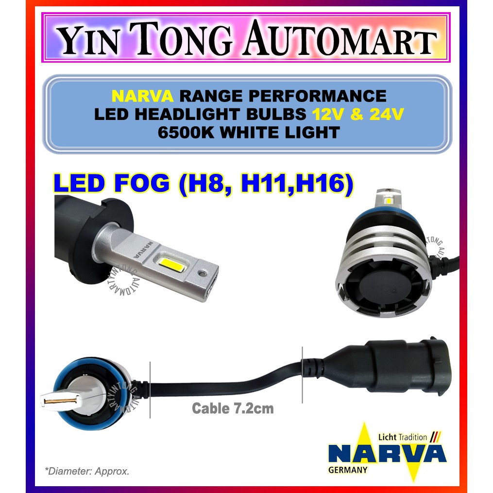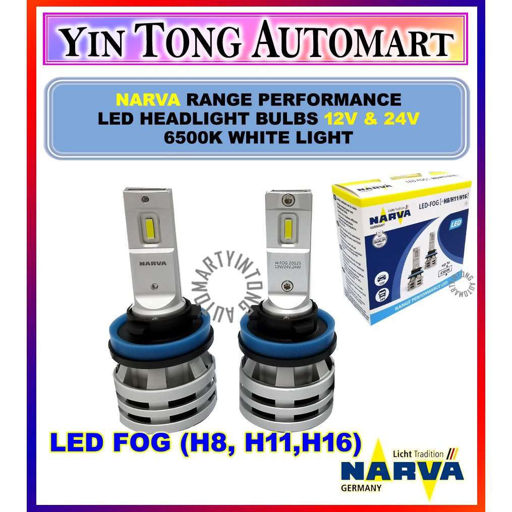 NARVA Range Performance LED 12V & 24V (H1, H3, H4, H7, H11, HIR2, HB3/4, LED FOG (H8, H11,H16)) 6500K White Light