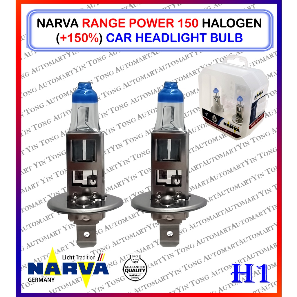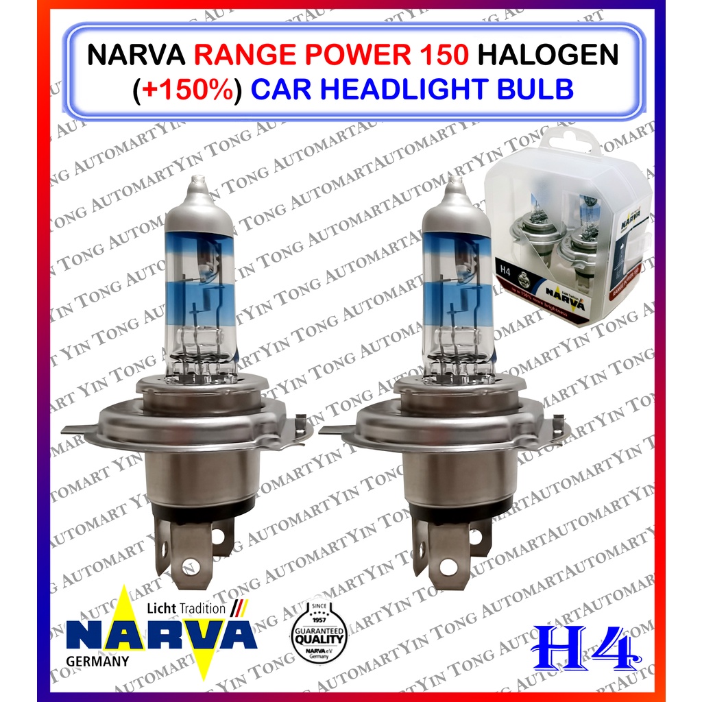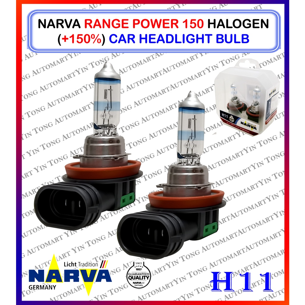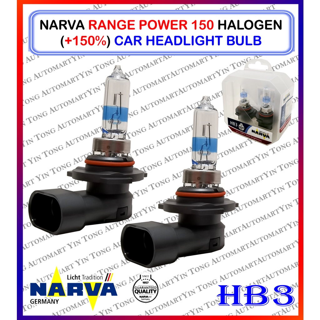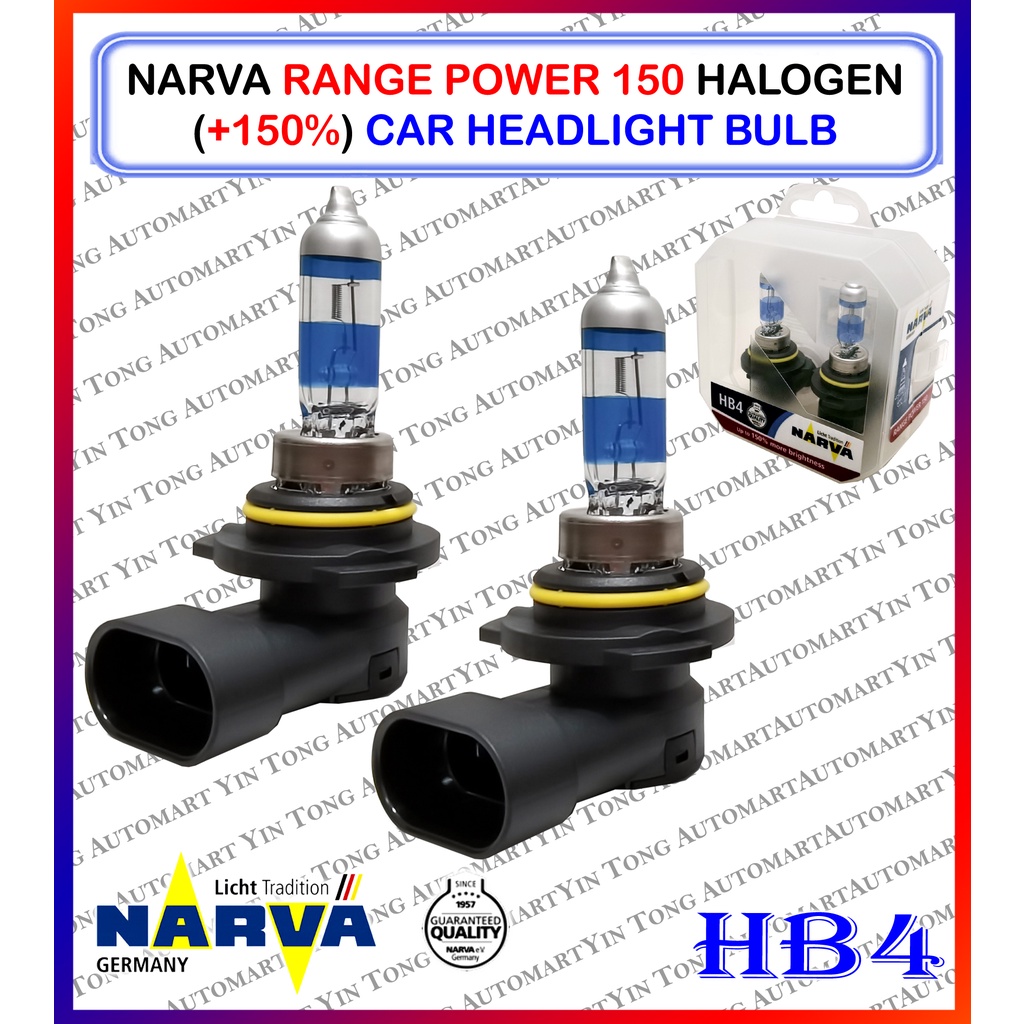 NARVA Range Power 150 Halogen (+150%) /Range Power 200 (+200%) Car Headlight Bulb H1, H4, H7, H11, HB3, HB4 (1SET 2 PCS)
