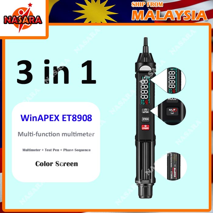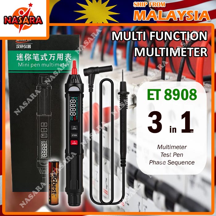 NASARA ~ ET8908 DIGITAL INTELLIGENT MINI PEN MULTIMETER NON-CONTACT 3IN1 PHASE SEQUENCE + TEST PEN + MULTIMETER