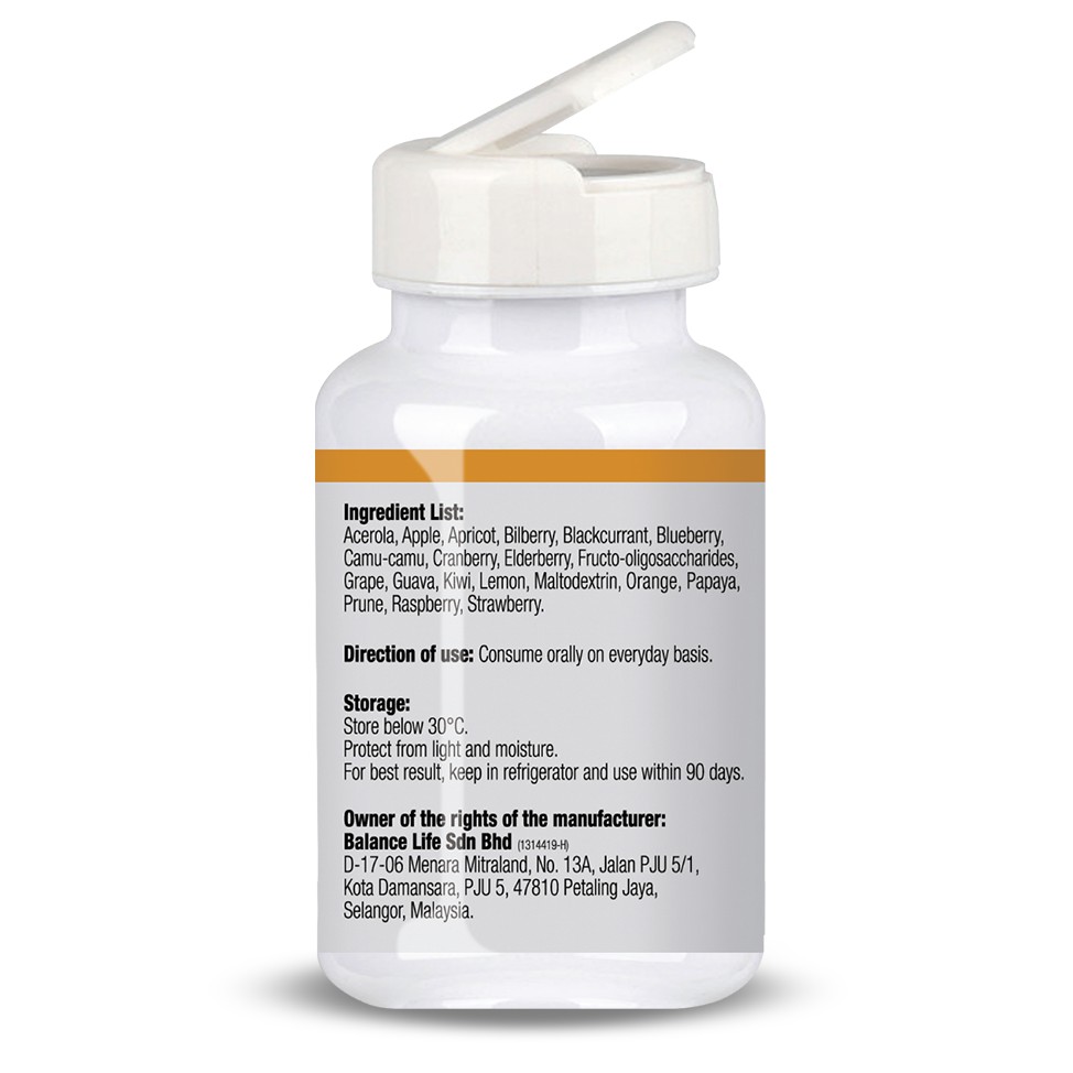 NATURAL VITAMIN C 1000mg 天然水果成分维生素C咀嚼片 - Balance Life Pur C Mixed Fruits Chewable Tablet (100s)