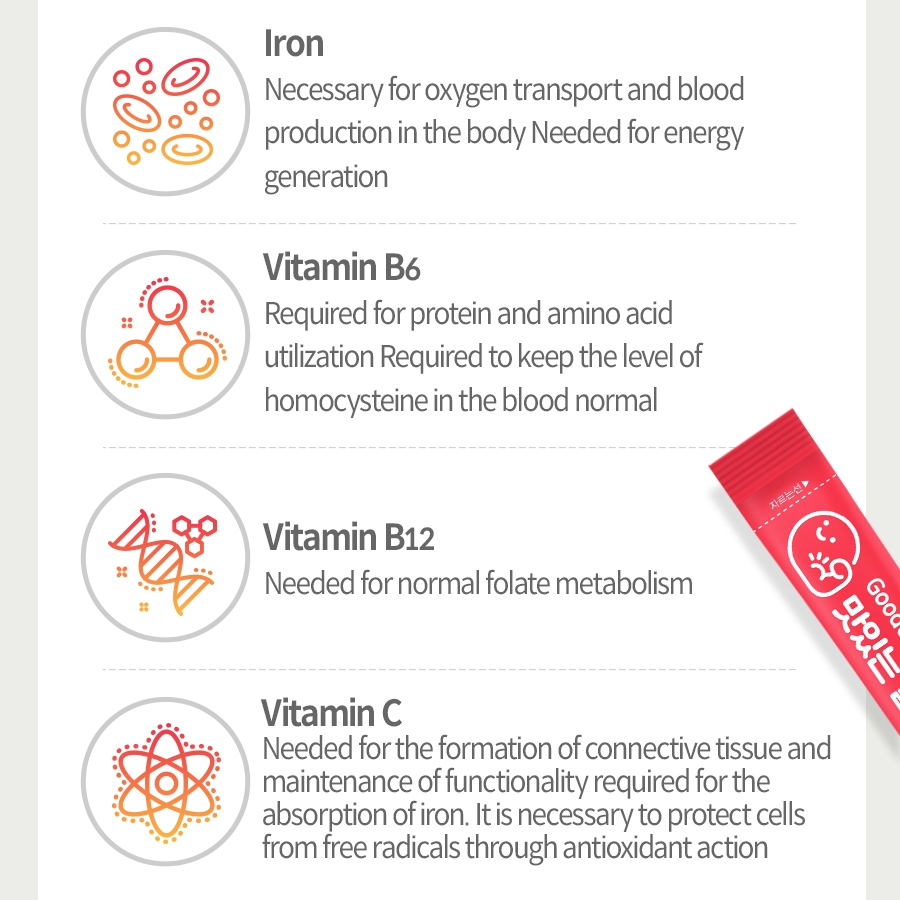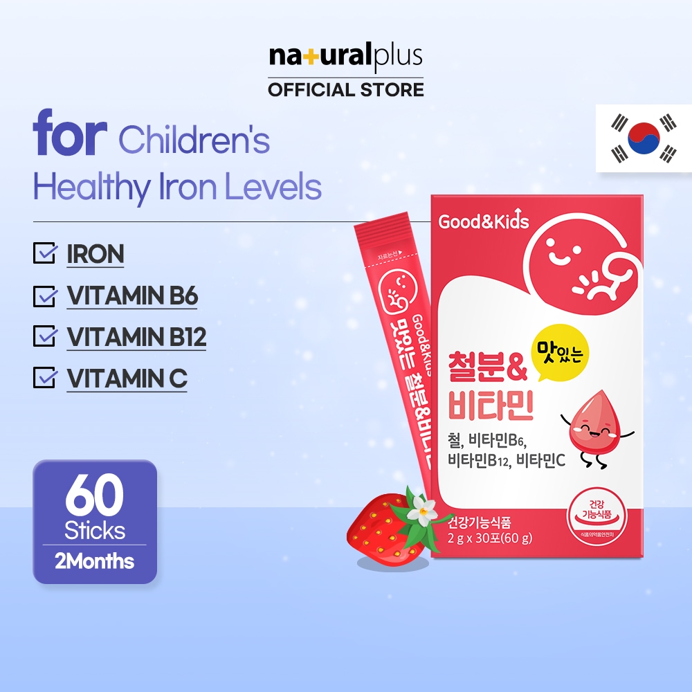 NATURALPLUS Korea Good&Kids Delicious Iron & Vitamins for kids, Vitamin C, Vitamin B6 B12, Strawberry Flavor, 30 Packets
