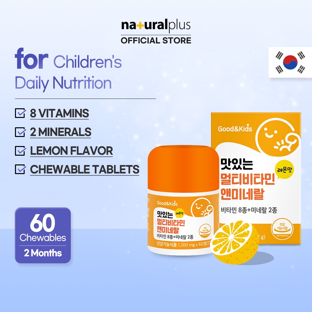 NATURALPLUS Korea Good&Kids Delicious Multivitamin and Mineral for Kids, 10 Kinds of Vitamins and Minerals, Lemon Flavor Chewable 60 Tablets