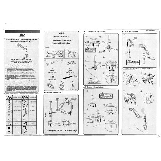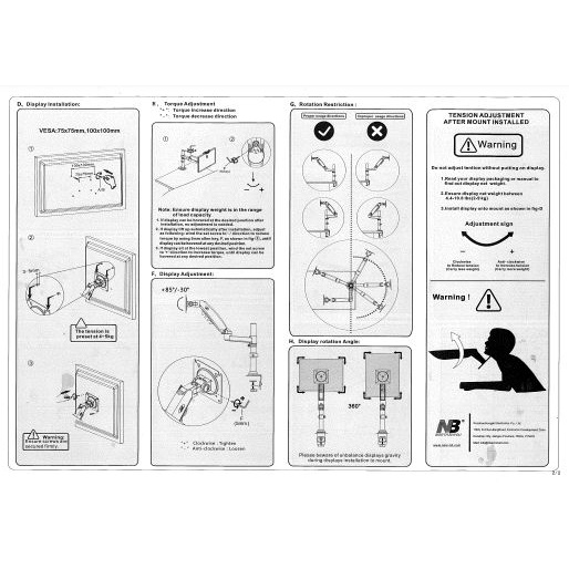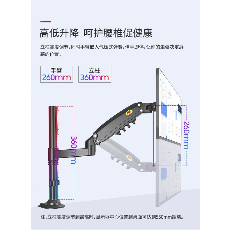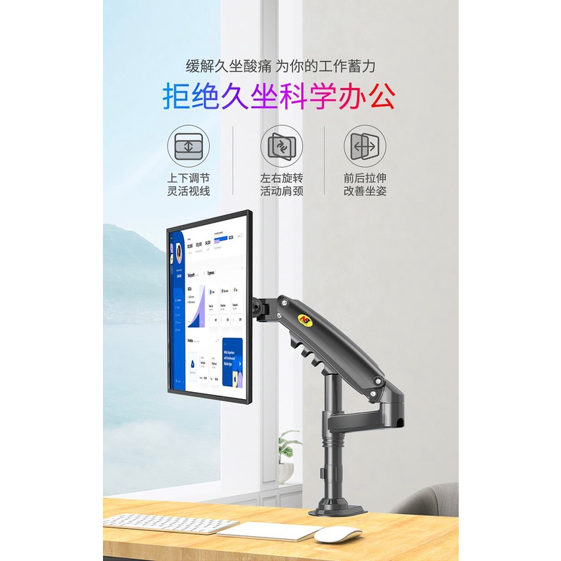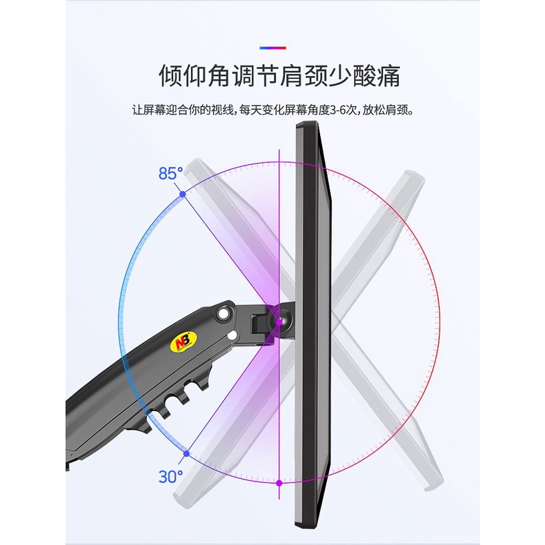 NB H80 North Bayou 17 to 27 Inch Gas Strut lift left and right rotating aluminum alloy monitor frame