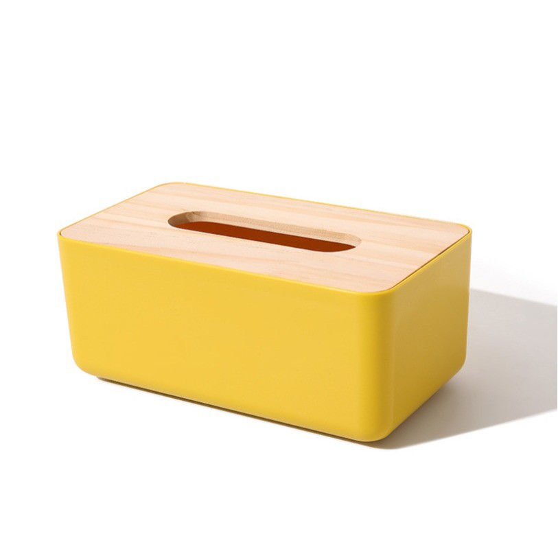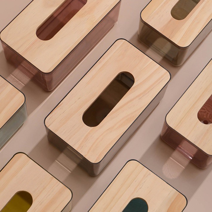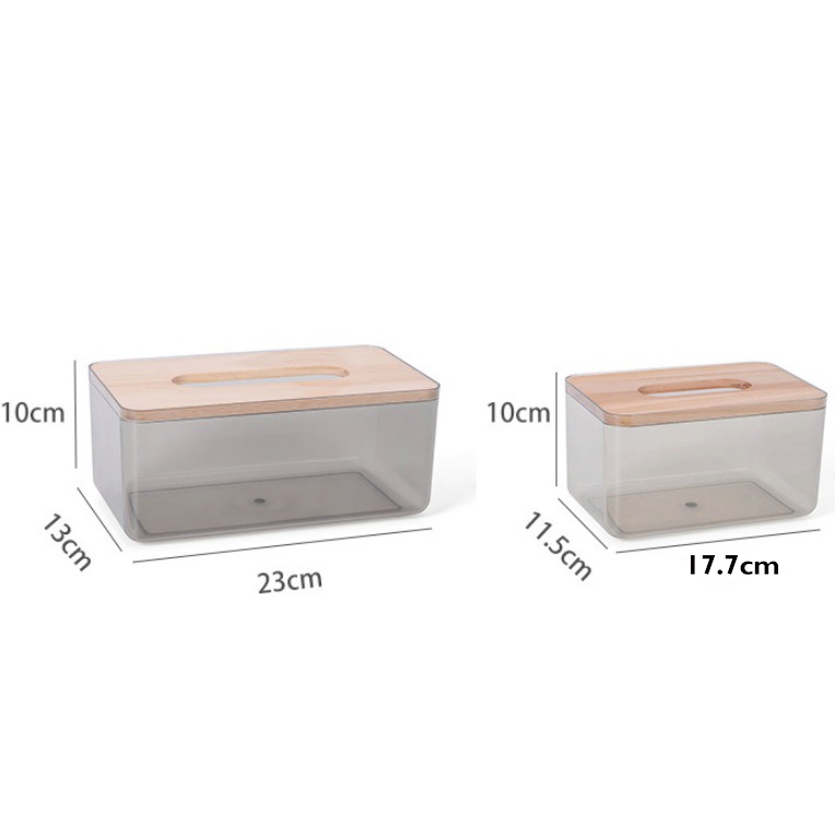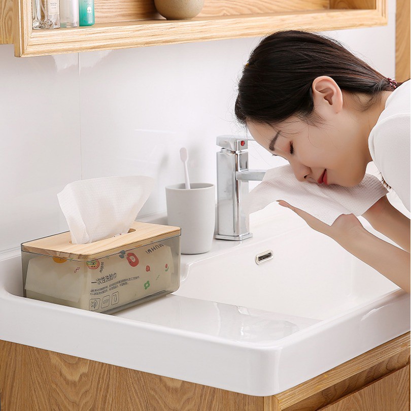 NBV Transparent Tissue Box with Bamboo Wooden Cover Face Mask Box Home Bathroom Car Living Room Minimalist