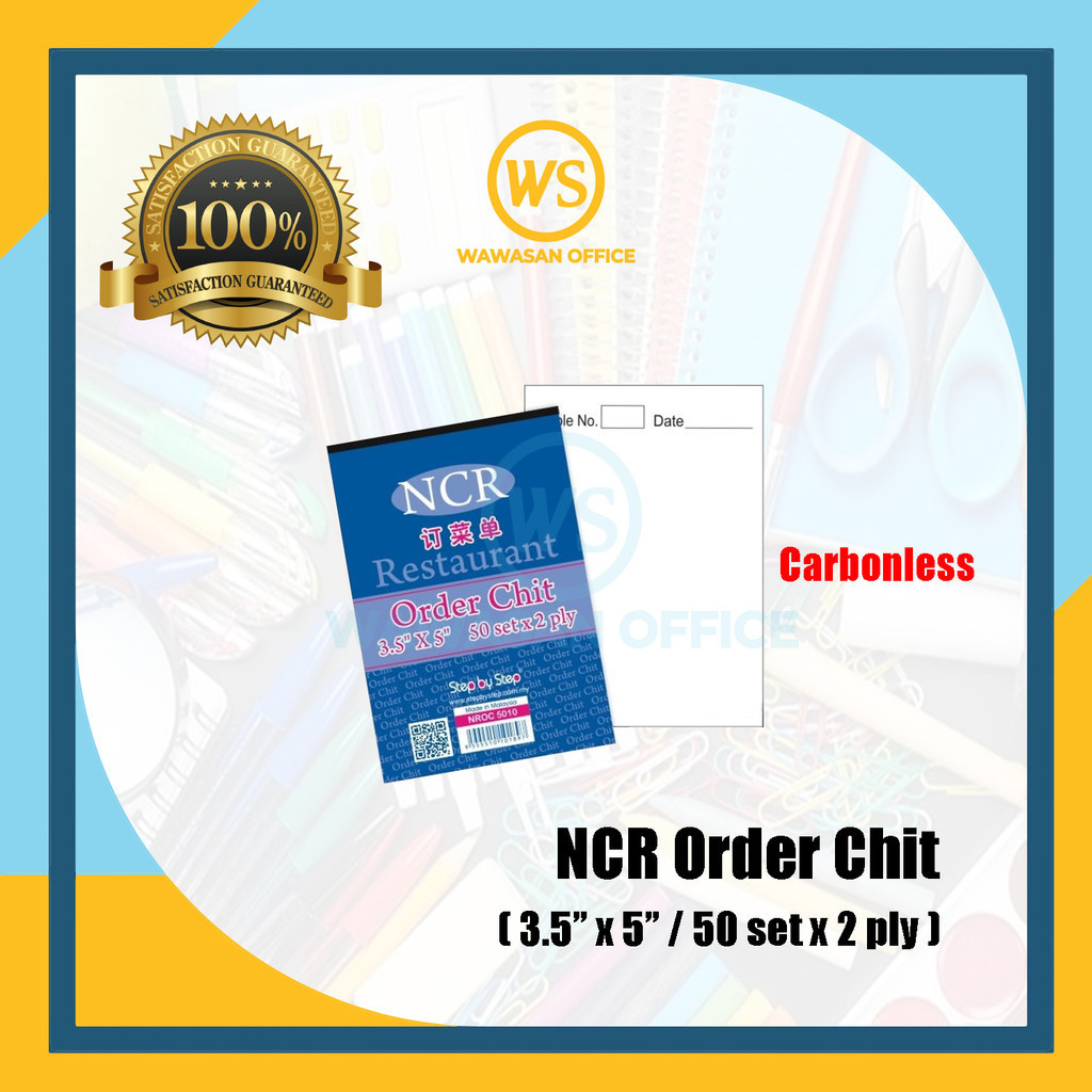 NCR Restaurant Order Chit Book / Order Book / Buku Order Restoran 3.5''x5'' (50 Set x 2 Ply)