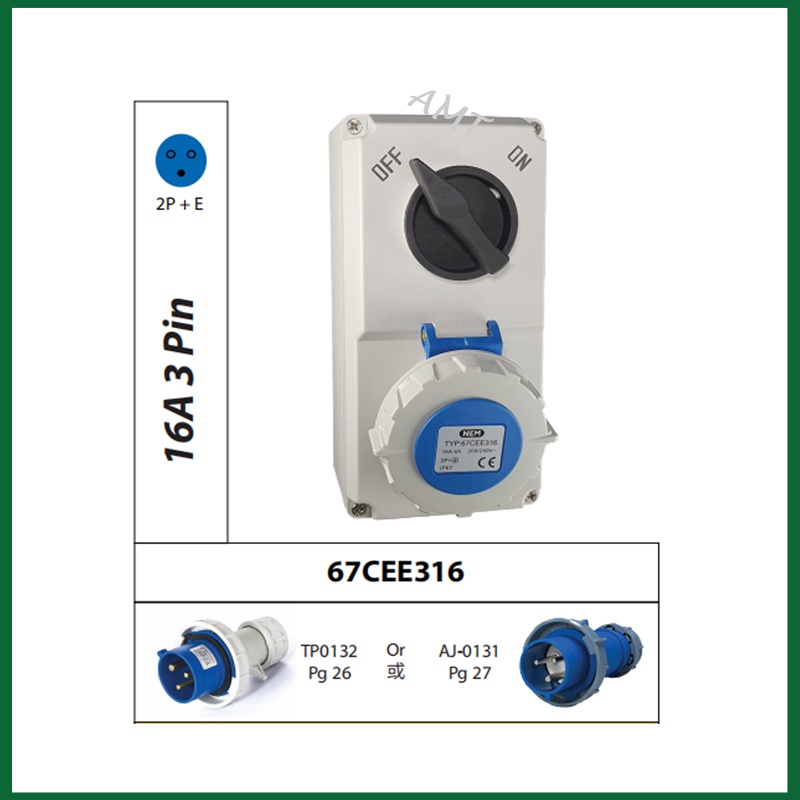 NEM ISOLATOR WEATHERPROOF SOCKET 16A 3PIN IP66 67CEE316