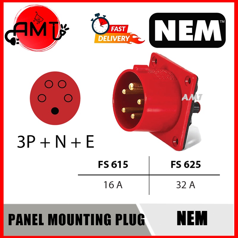 NEM PANEL MOUNT PLUG 3P+N+E 16A 32A 615 625 IP44