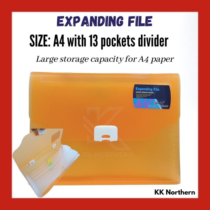 13 Pockets Neon Light Colour Expanding File Bag With Handle Expanding Folder Document Bag 13 Lapis A4 Pocket File / 文件夾