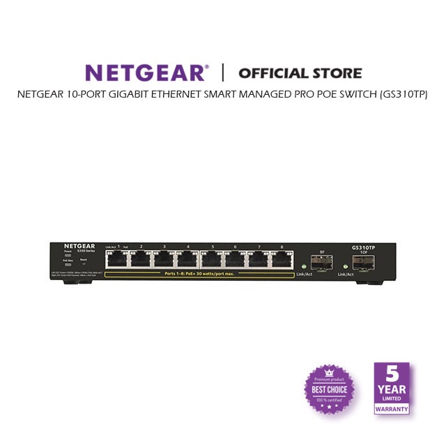 NETGEAR 10-Port Gigabit Ethernet Smart Managed Pro PoE Switch (GS310TP) with 8 port PoE+ 55W