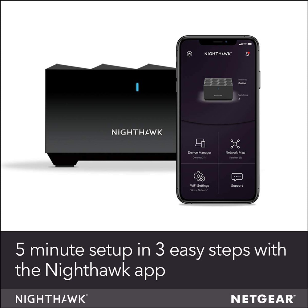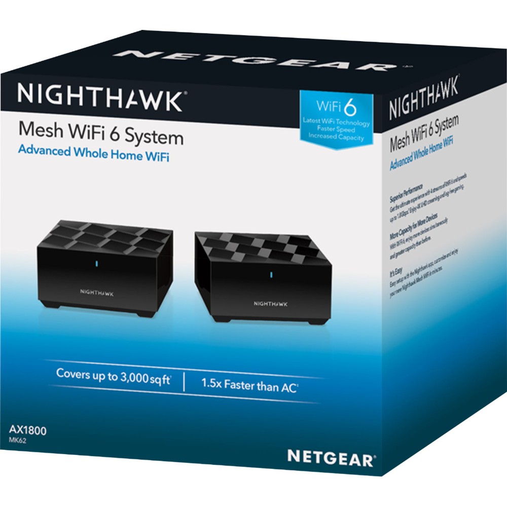 NETGEAR Nighthawk Whole Home Mesh WiFi 6 System (MK62) - AX1800 Router with 1 Satellite Extender - MK62-100UKS