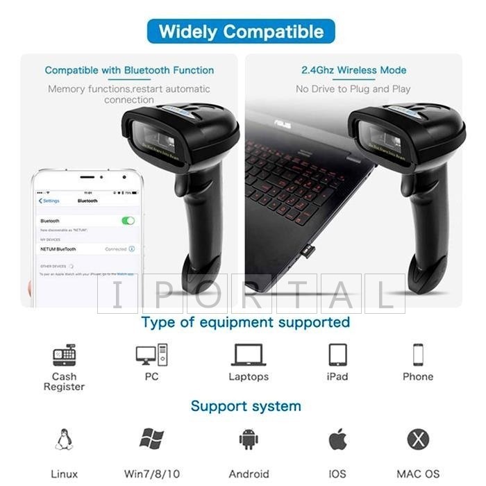 NETUM 2D QR Barcode Scanner 2.4G Wired Wireless Bluetooth Handheld