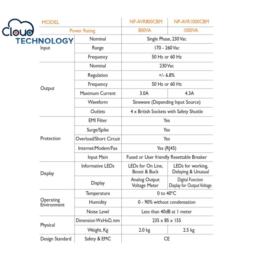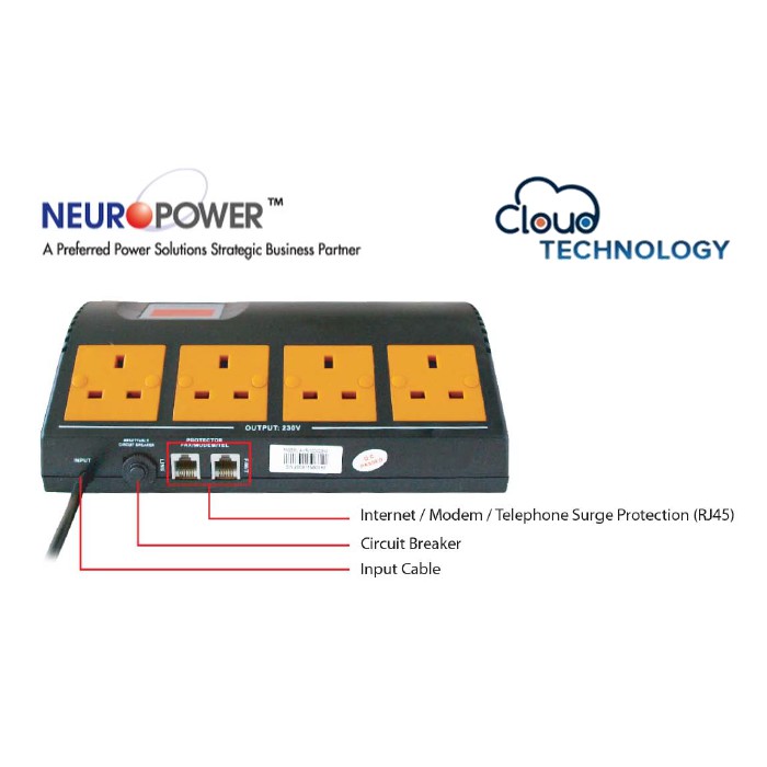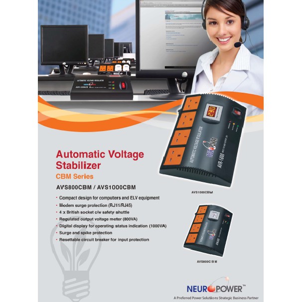NEUROPOWER AVS800CBM 800VA AUTOMATIC VOLTAGE REGULATOR STABILIZER, INTERNET/MODEM/TELEPHONE SURGE PROTECTOR