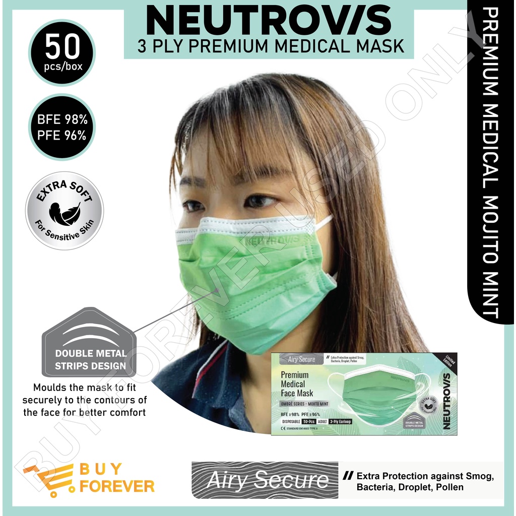 NEUTROVIS MEDICAL Premium MASK 3Ply Premium Medical Face Mask by NEUTROVIS 4PLY BLACK EARLOOP SHIP FAST READY STOCK