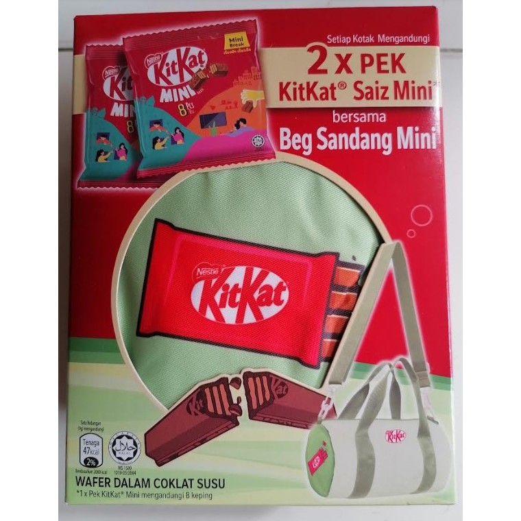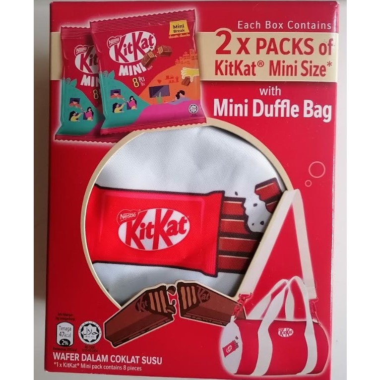 NEW! KitKat 2 x Packs Kitkat Saiz Mini (8pcs/pack) FREE KITKAT Duffle Bag Kitkat Free Beg Sandang Limited Edition