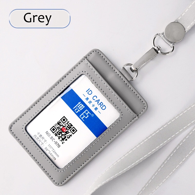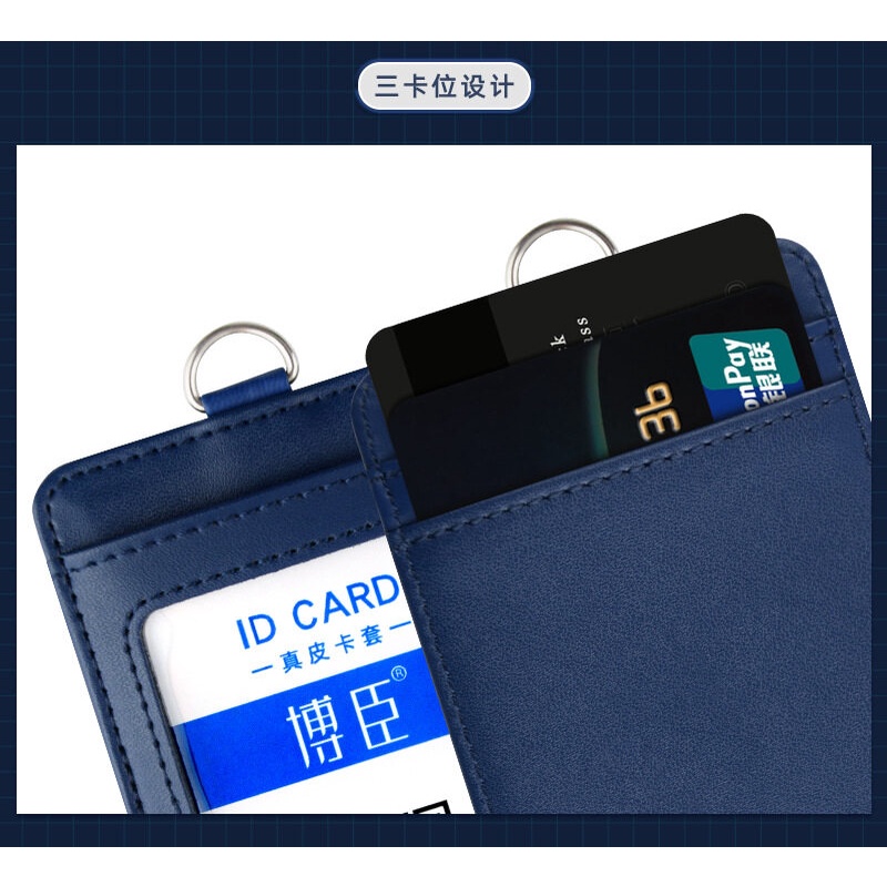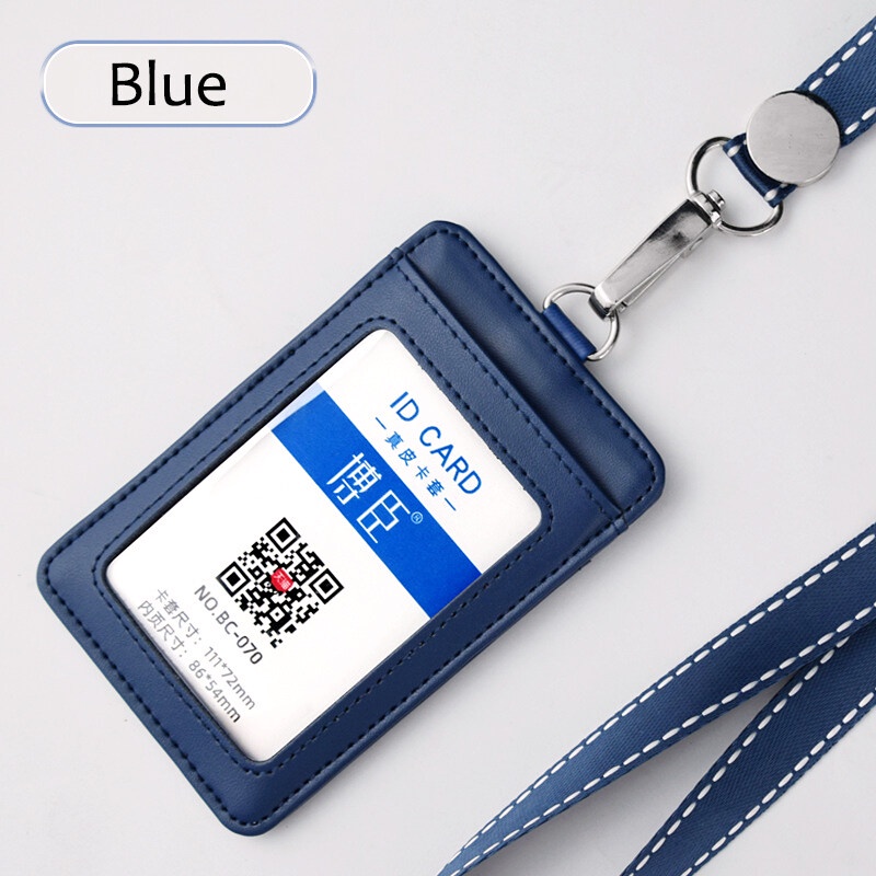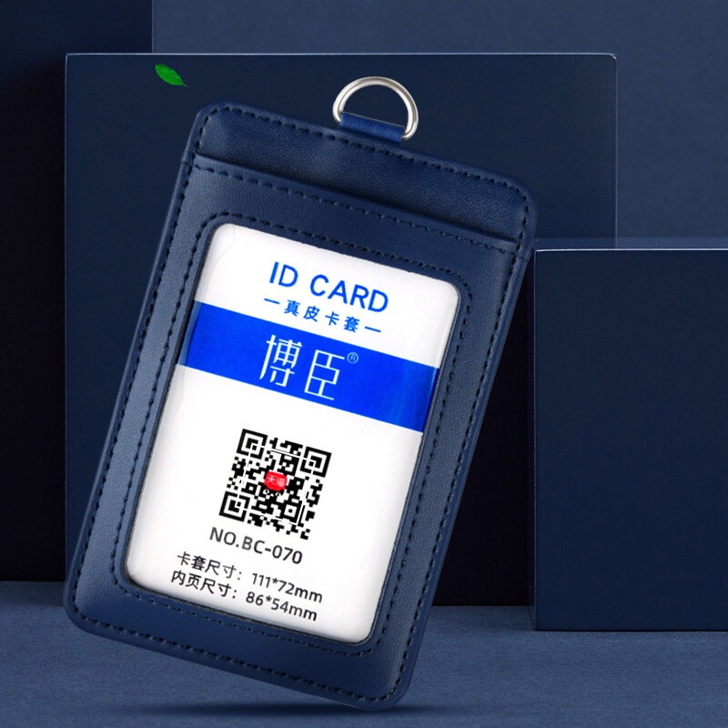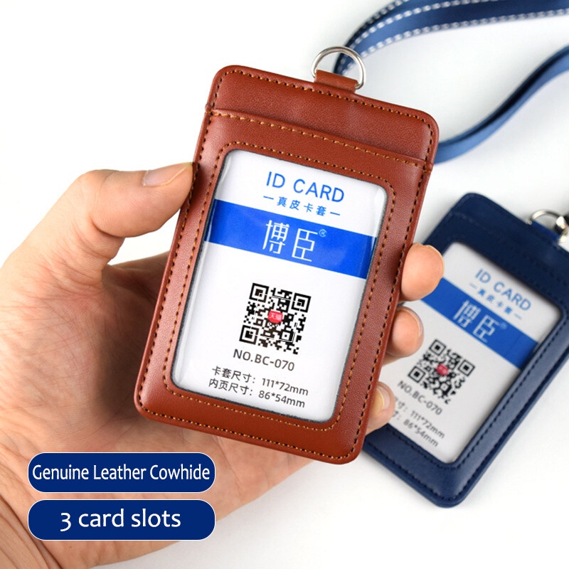NEW 2024 Real leather Staff Office Worker Badge Card Holder Business Work Permit Name tag Mens and Women ID Cards Cases with Lanyard