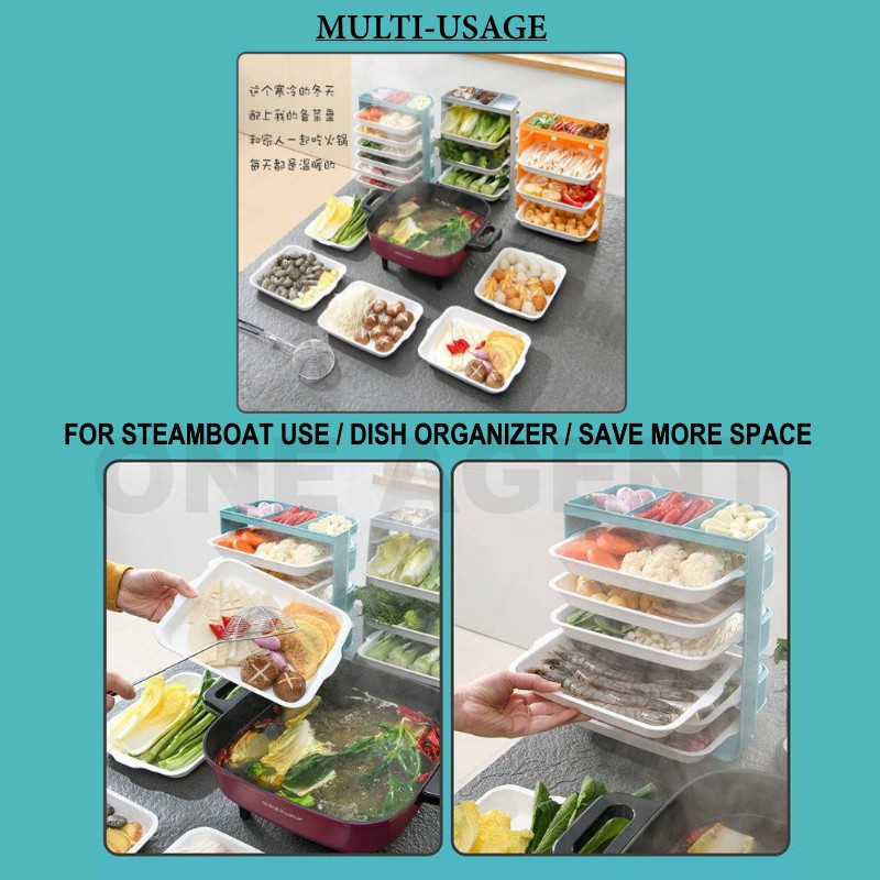 NEW 6 Layers Stackable Food Plate Rack Wall Mounted Steamboat Hot Pot Side Dish Plate Shelf Serving Organizer Platter
