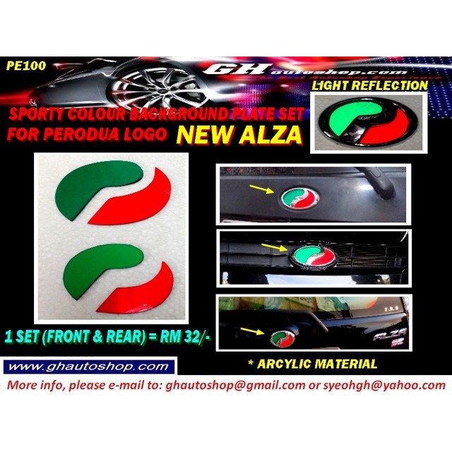 NEW ALZA reflect colour background plate set for perodua front & rear logo (4pcs)