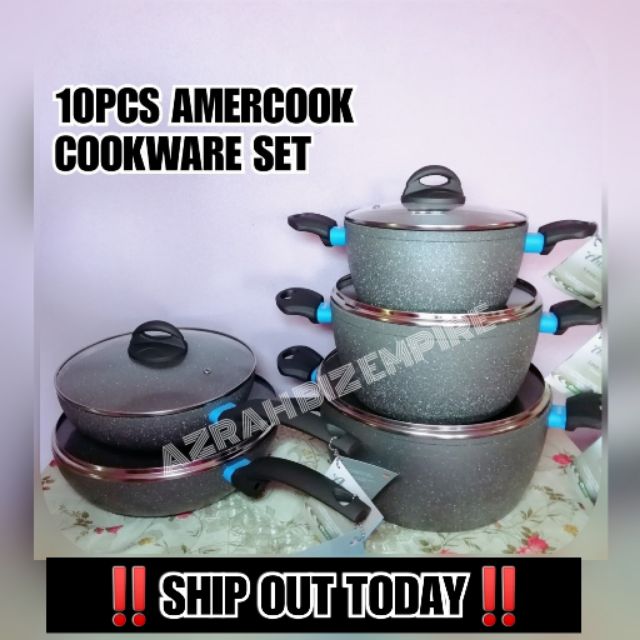 NEW ARRIVAL! 10PCS AMERCOOK LAVA STONE COOKWARE SET / SET PERIUK KUALI AMERCOOK NON-STICK