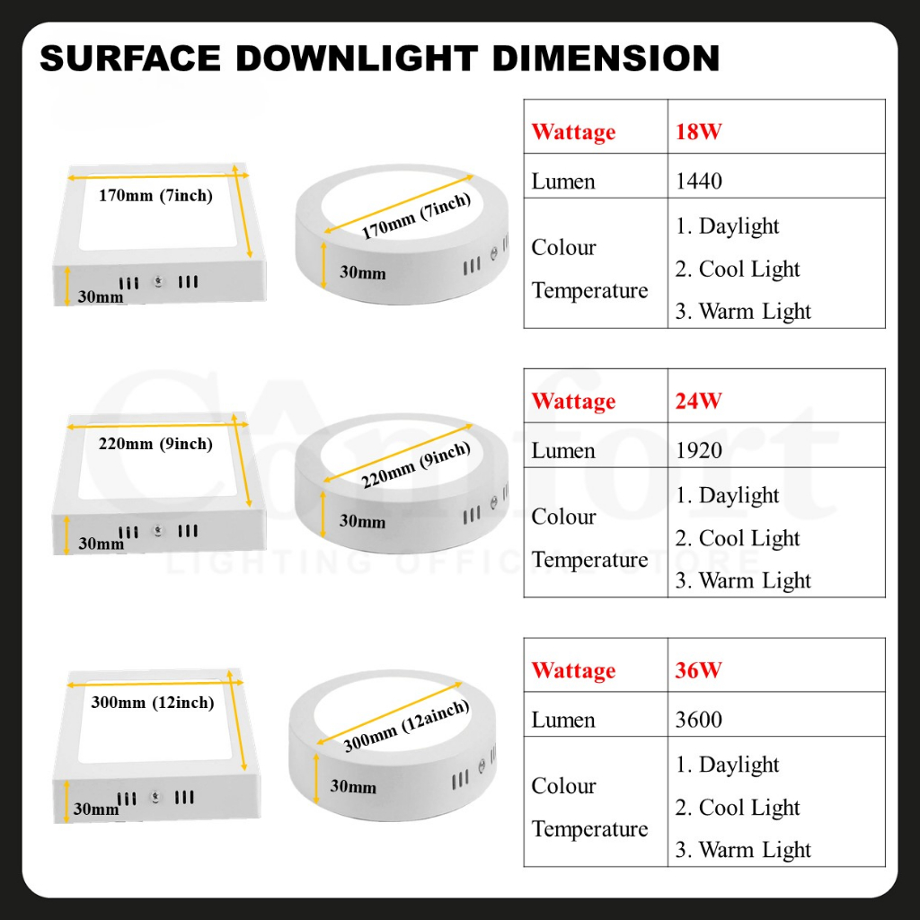 NEW ARRIVAL 18W 24W 36W LED Downlight LED Recessed Surface Down Light Ceiling Room Round Downlight Square Downlight