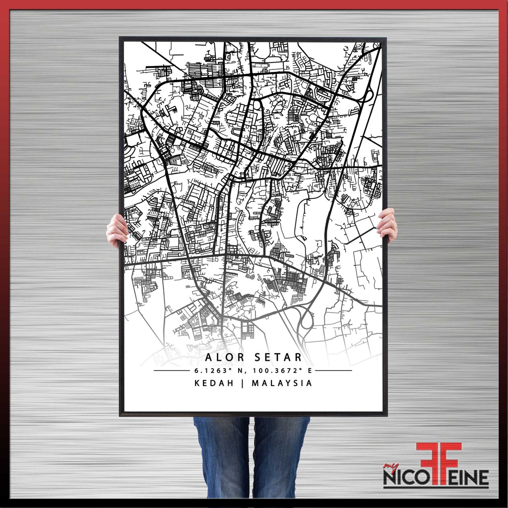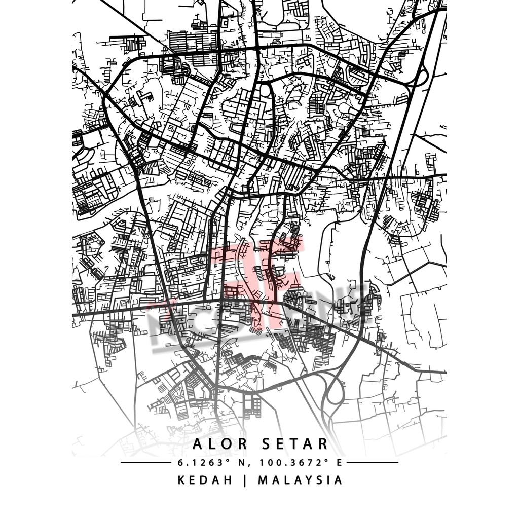 NEW Alor Setar Kedah Minimal City Map with Coordinate Black and White Large Poster Print / Wall Art