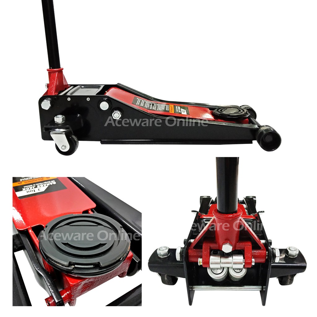 NEW COMBO DOUBLE PIN SAFETY LOCK 3 TON JACK STAND & 3 TON ULTRA LOW PROFILE FLOOR JACK & CROSS WRENCH [RANDOM COLOUR]