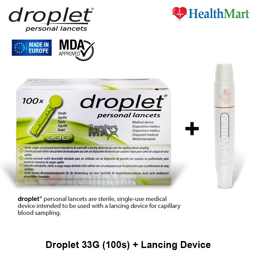 NEW DROPLET PERSONAL LANCET 33G 100PCS FOC LANCING DEVICE