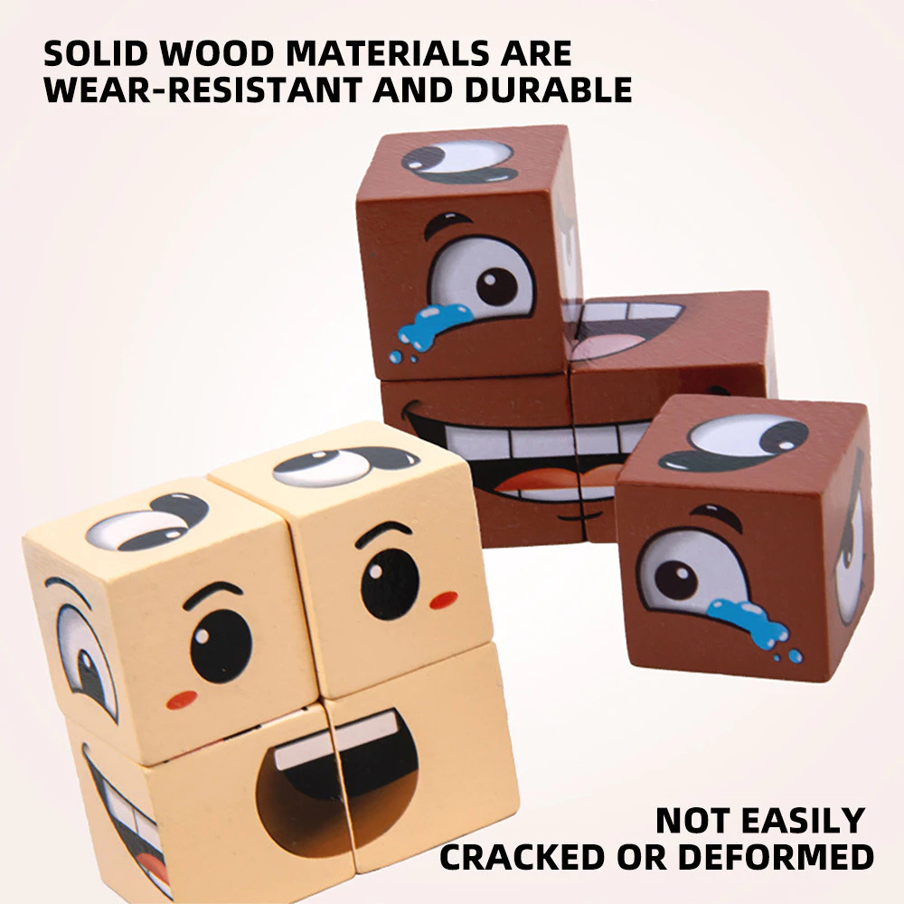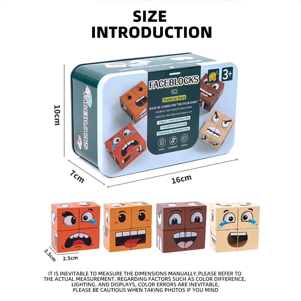 NEW Face Blocks Game Face Changing Emoji Cube Wooden Building Block with Bell & Truth & Dare Cards 80 Card Family Game