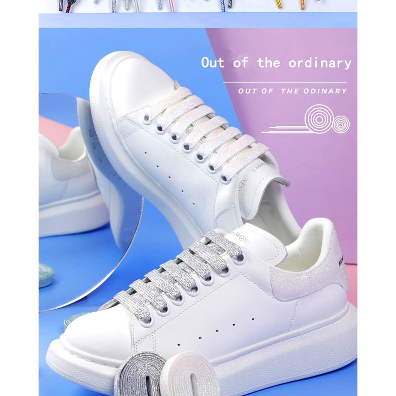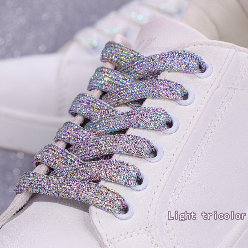 NEW Fashion Glitter Shoelaces Colorful Flat Shoe laces for Athletic Running Sneakers Shoes Boot 1CM Width Shoelace Strings 1Pair