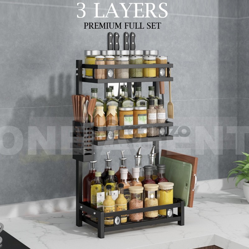 NEW Kitchen Spice Rack Stainless Steel Seasoning Storage Rak Condiment Rack Seasoner Rack