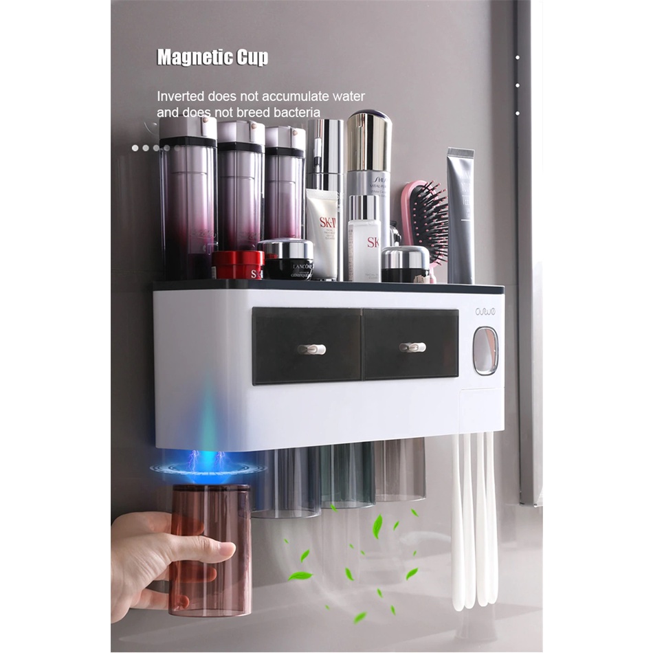 NEW Modern Wall Mounted Toothbrush Holder Toothpaste Dispenser Punch-free Bathroom Toothpaste Storage Rack with Drawer