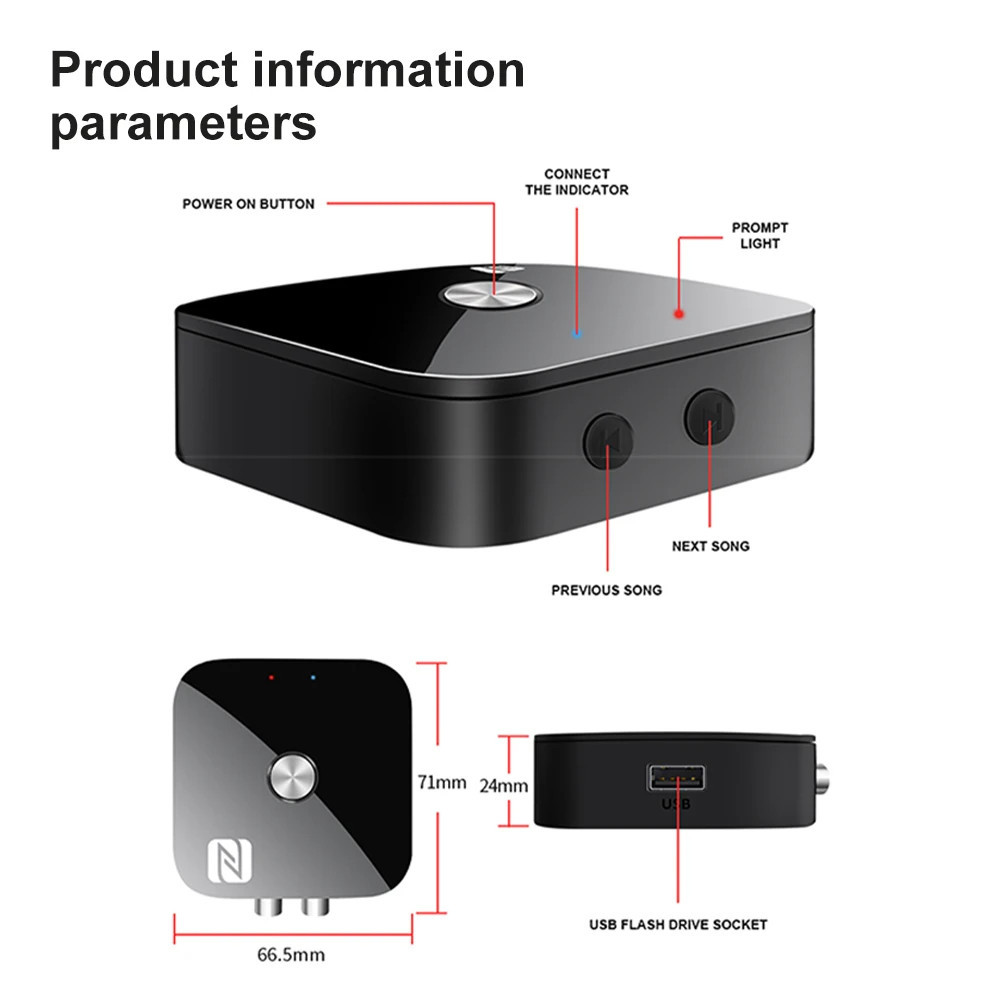 NFC Bluetooth 5.3 Audio Receiver 3.5mm AUX R/L RCA Stereo Lossless HIFI Music Wireless Adapter USB U-Disk Play Remote Control For Car Kit Speaker Amplifier