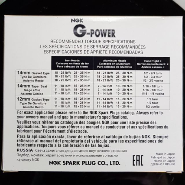NGK G-POWER PLATINUM ALLOY SPARK PLUG BKR6EGP(7092) / DCPR7EGP(1682)