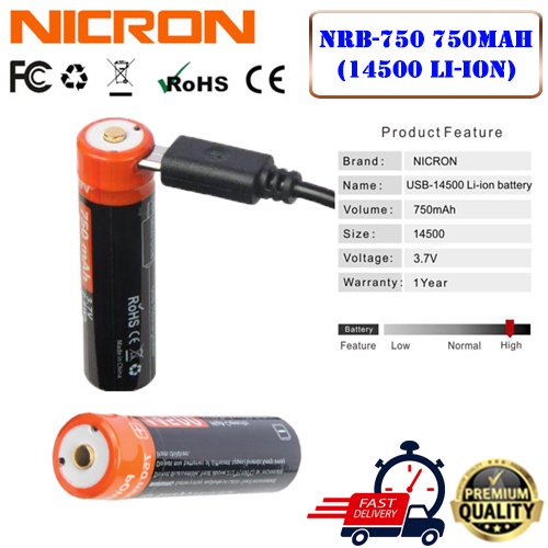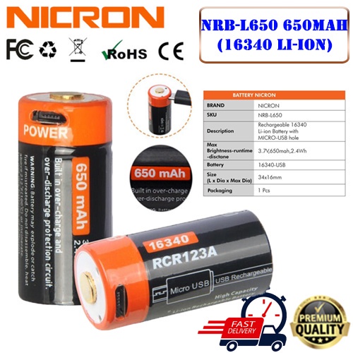 NICRON Rechargeable High capacity battery USB Li-ion Battery NRB-L600 / NRB-L650 / NRB-L700 /NRB-2600 Torchlight Battery