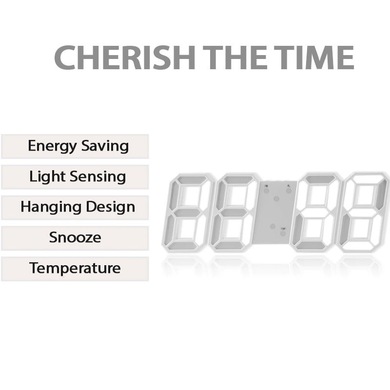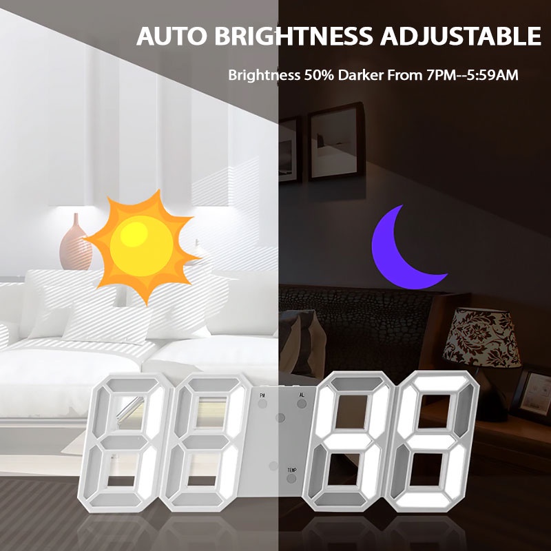 NIGHT MODE Auto Dimming 3D LED Alarm Clock 12 / 24 Hour Temperature Induction Display Digital Clock Jam Dinding Meja