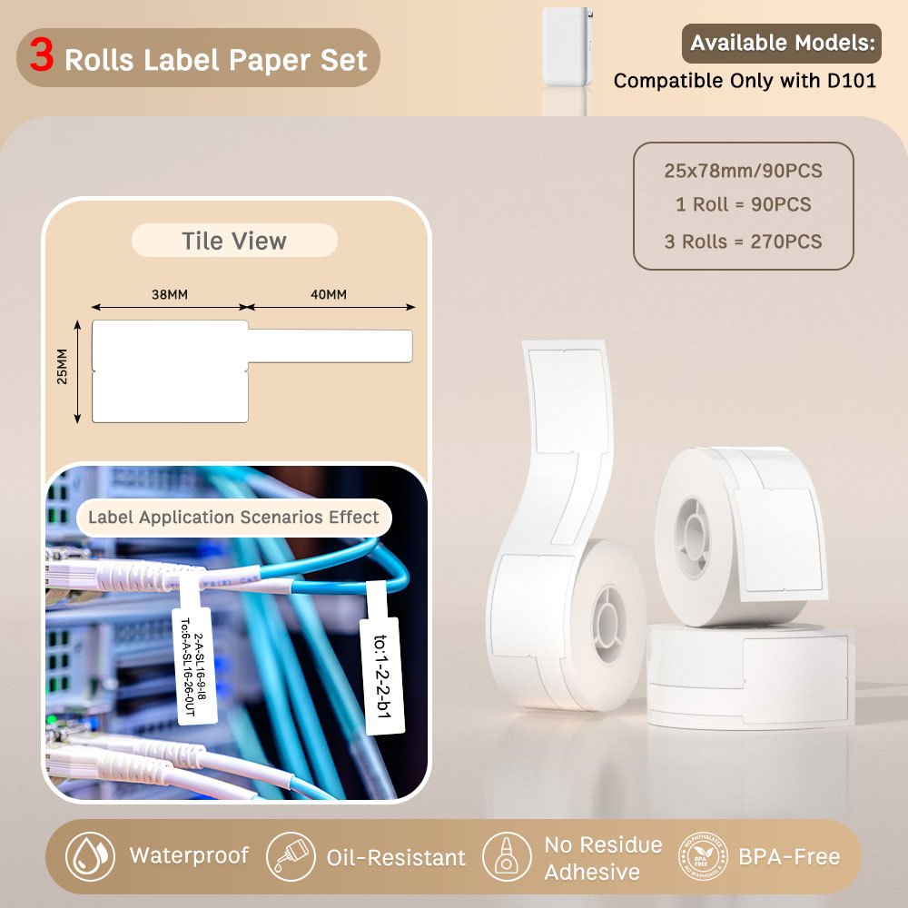NIIMBOT D101Cable Label Self-adhesive Thermal Label Paper Network Cable Label Stickers P-type Power