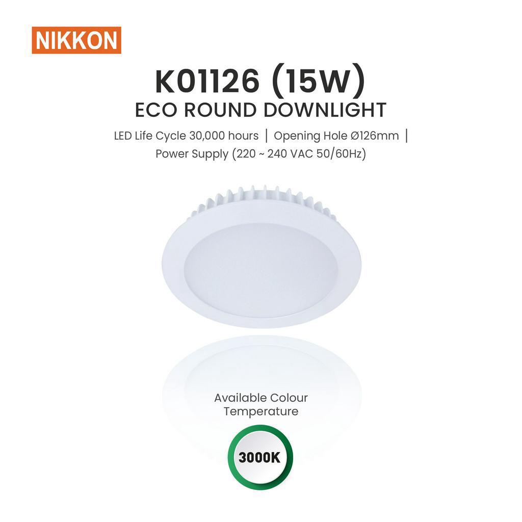 NIKKON ECO ROUND LED DOWNLIGHT 4INCH (4") 15W 3000K (Warm White) - K01126