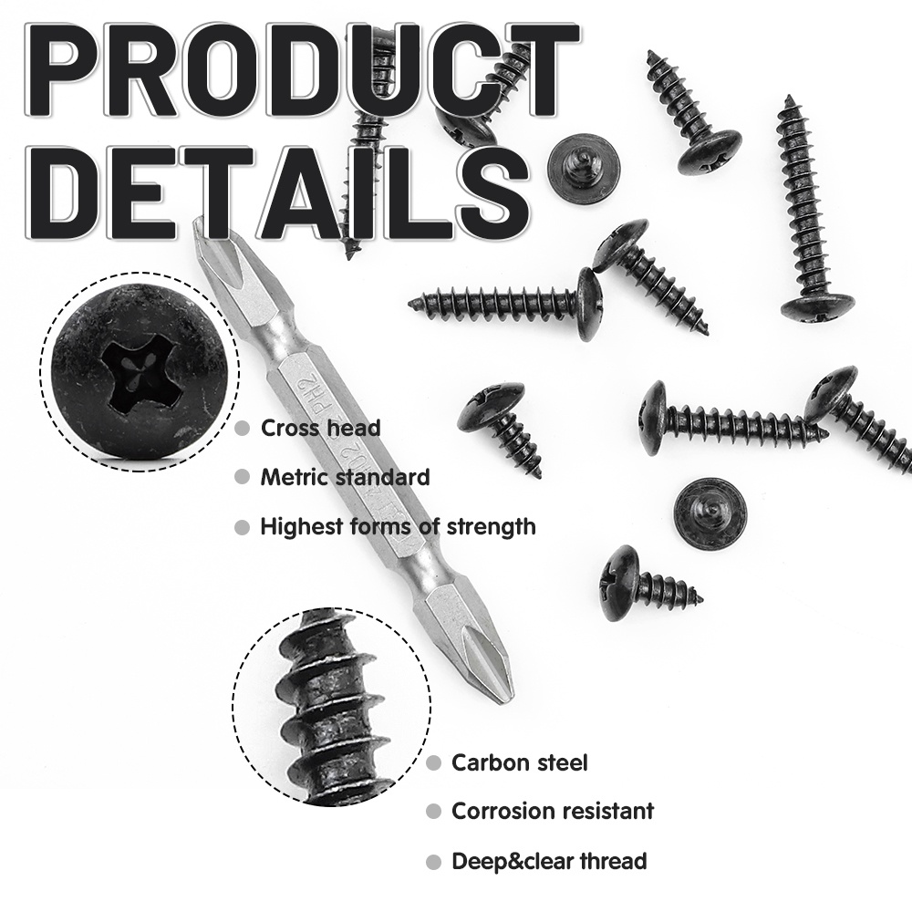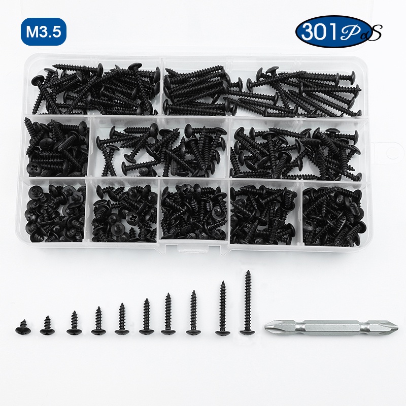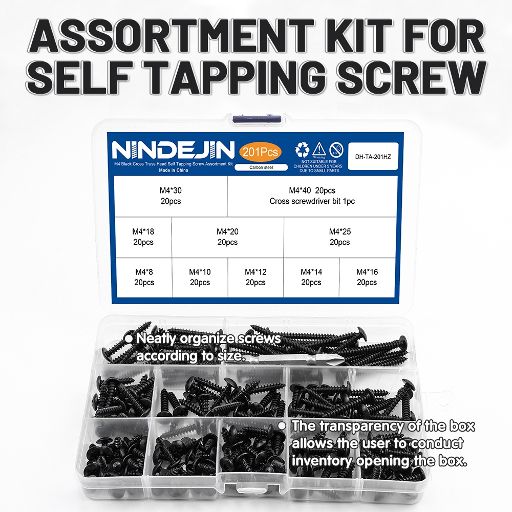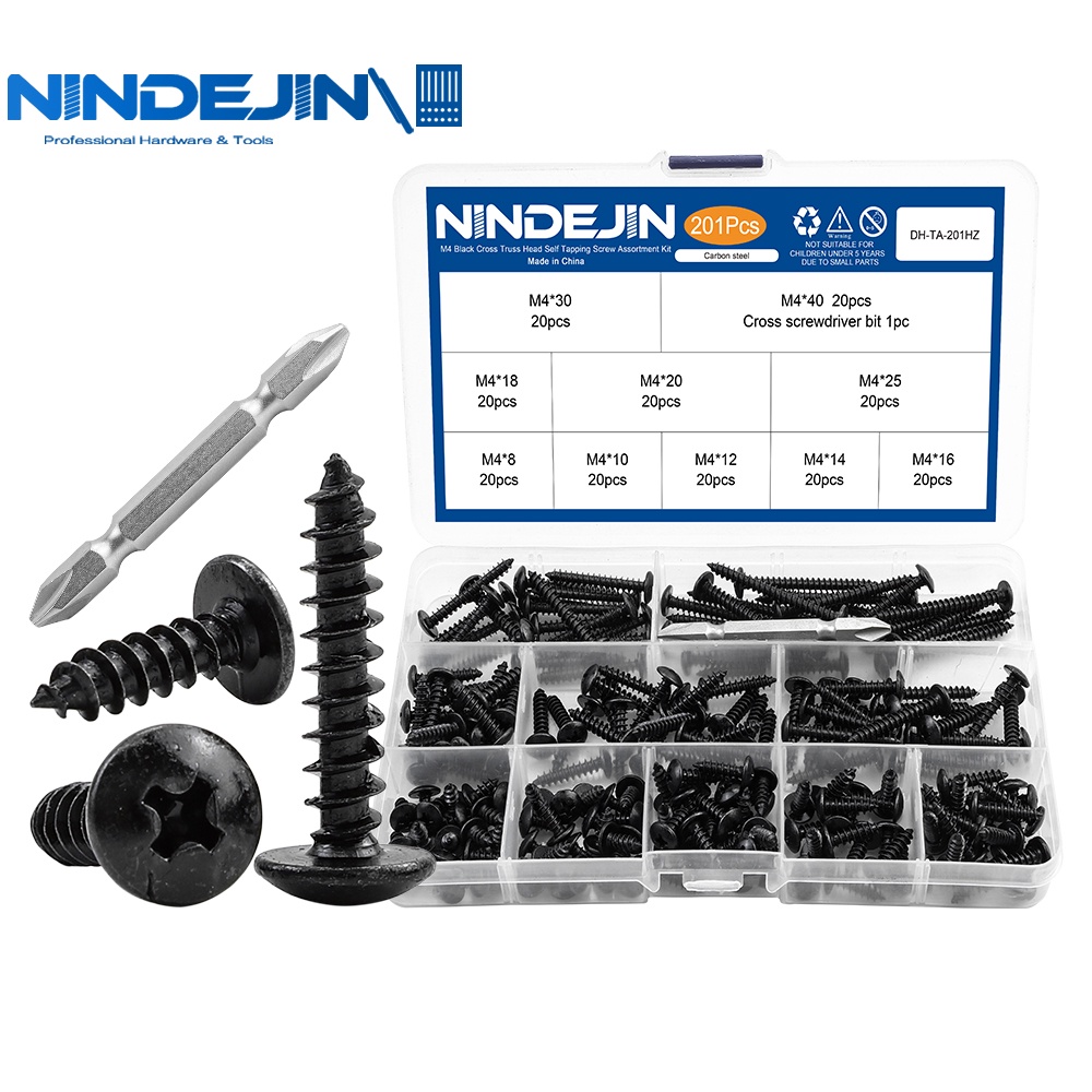 NINDEJIN Truss Head Self Tapping Screw Set M3-M5 Carbon Steel Phillips Round Mushroom Head Screw Assortment Kit