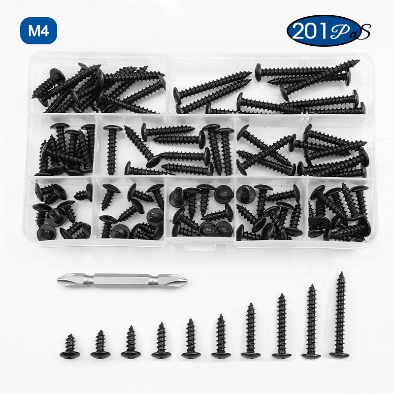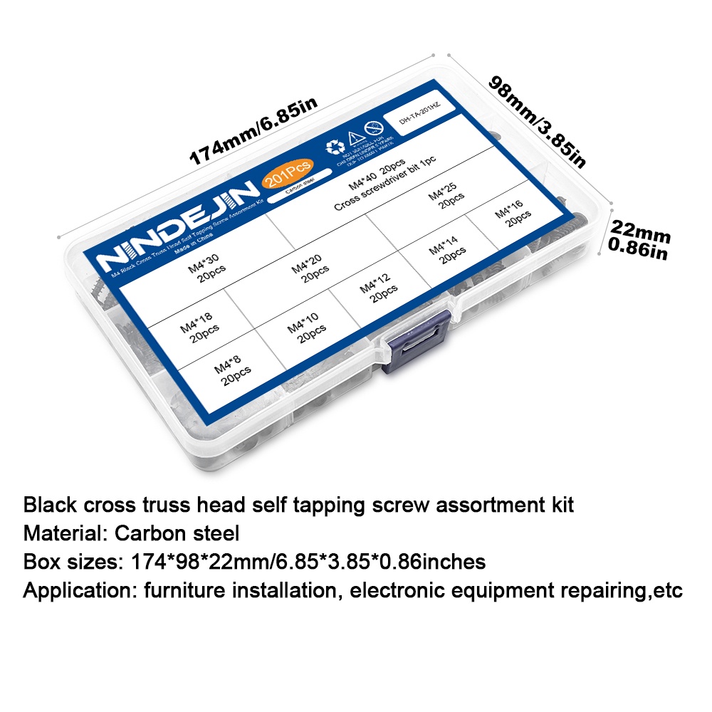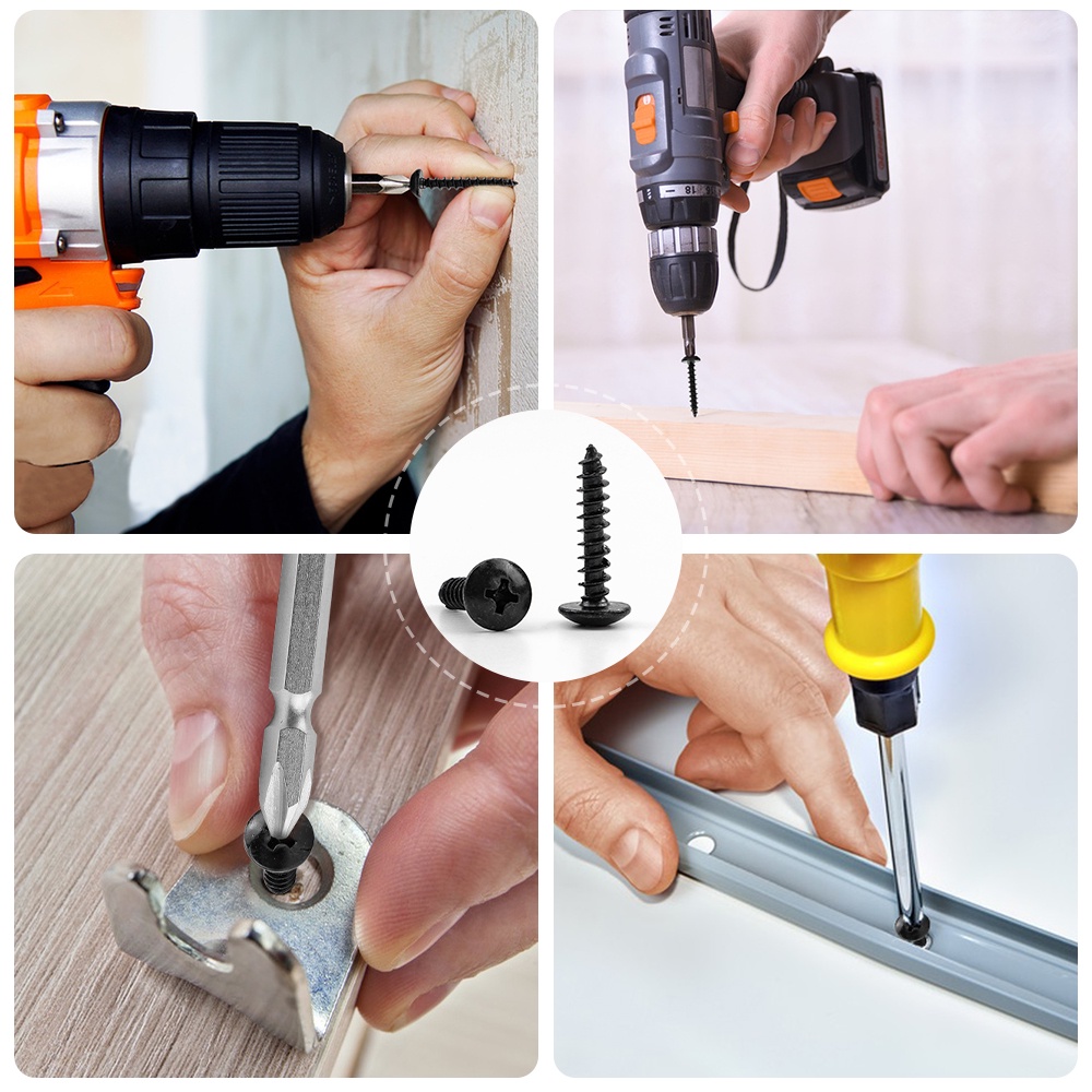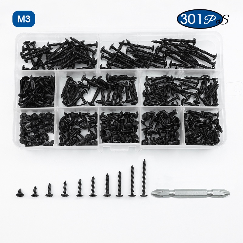 NINDEJIN Truss Head Self Tapping Screw Set M3-M5 Carbon Steel Phillips Round Mushroom Head Screw Assortment Kit
