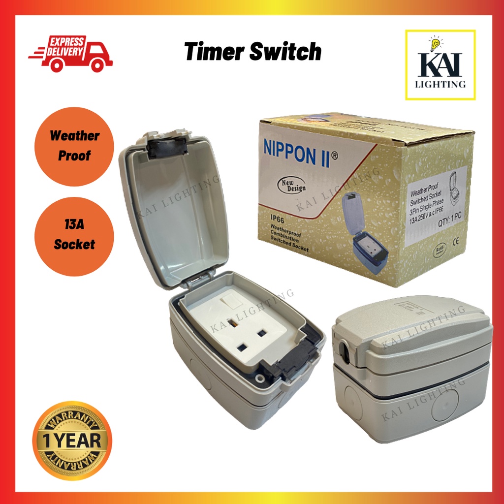 NIPPON 24HRS 13AMP PLUG IN TIMER SWITCH 3PIN / OUTDOOR SOCKET 13A WEAHTER PROOF WATERPROOF