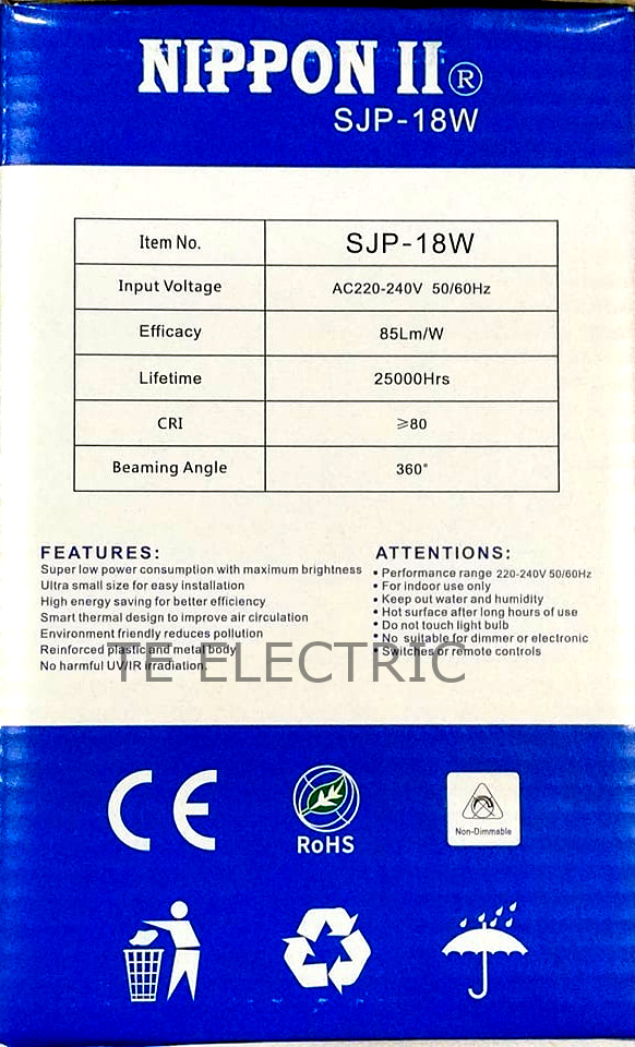 NIPPON II 18W E27 LED GLOBE BULB DAYLIGHT SCREW TYPE DOWNLIGHT