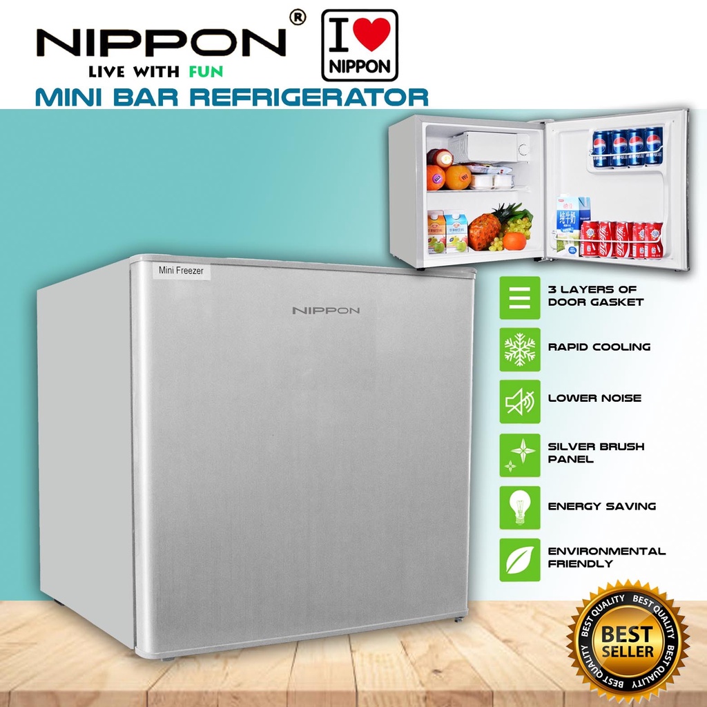 NIPPON NMFA50 SINGLE DOOR MINI FRIDGE MINI REFRIGERATOR MINI BAR PETI AIS MINI 50L (SILVER) ENERGY EFFICIENT SILENT