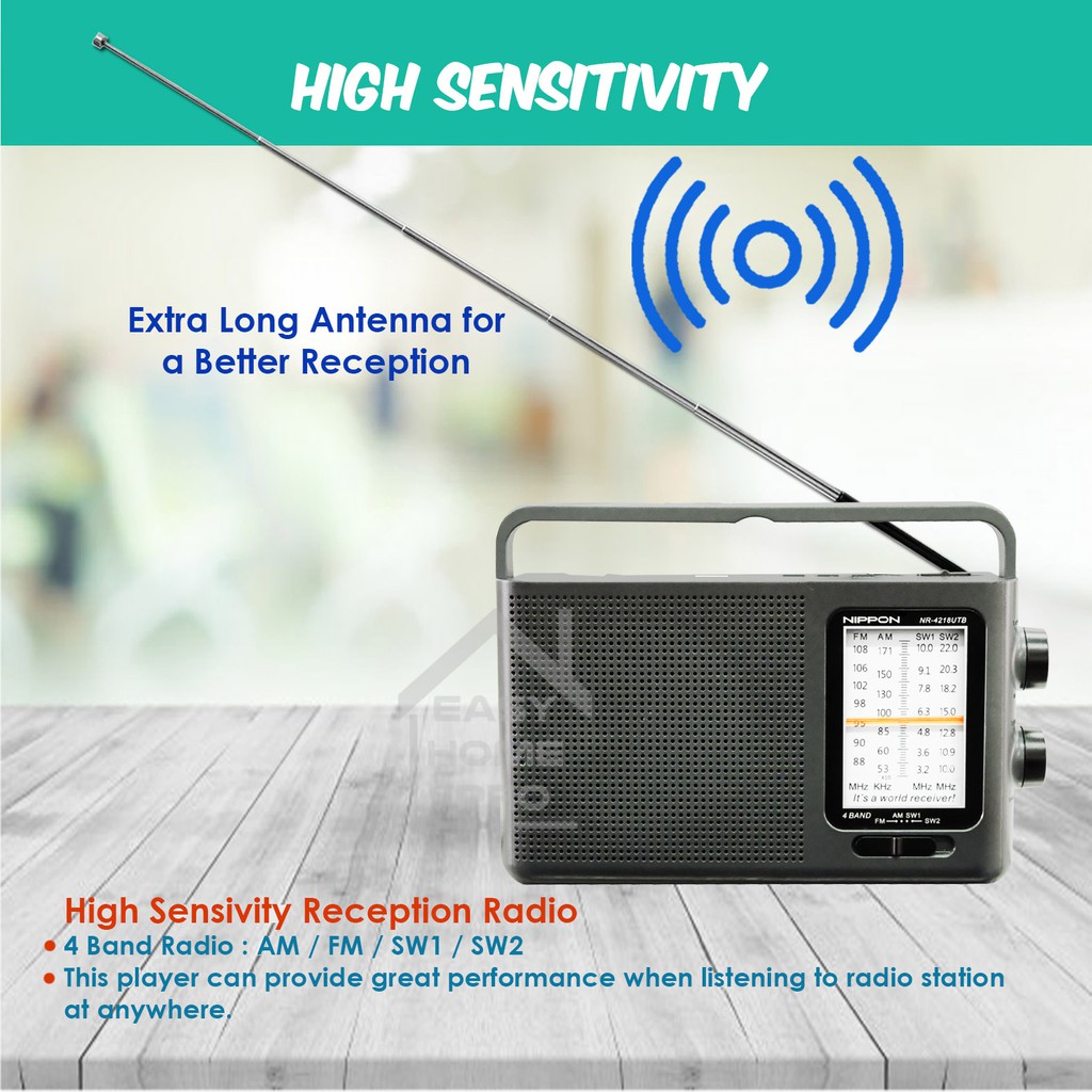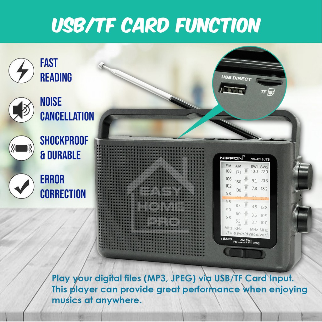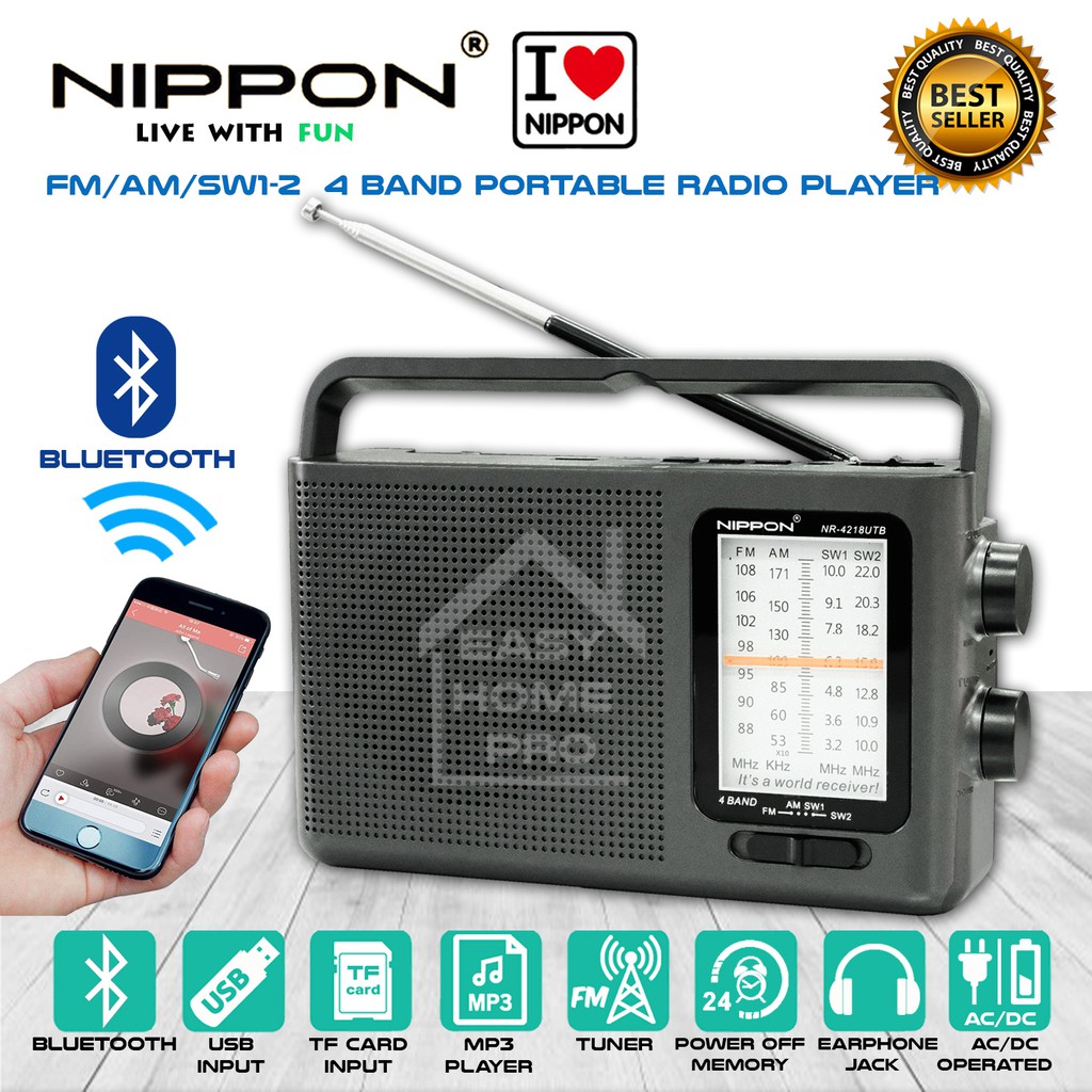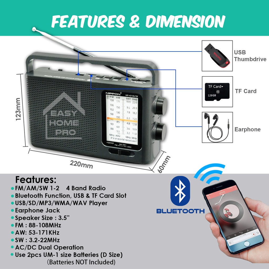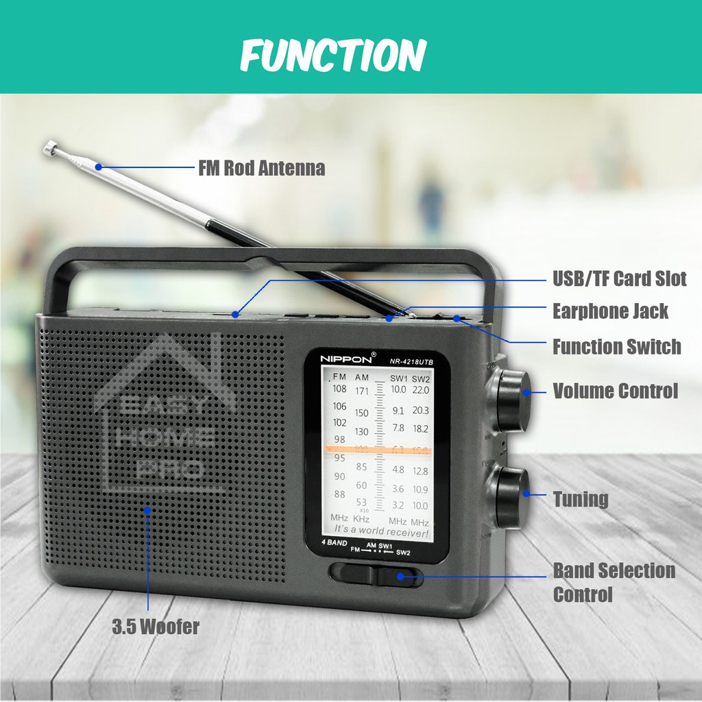 NIPPON NR-4218UTB FM/MW/SW 4 BAND PORTABLE RADIO MULTIBAND RADIO RECEIVER WITH USB/TF/BLUETOOTH