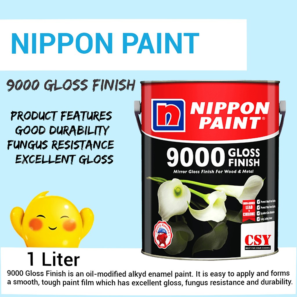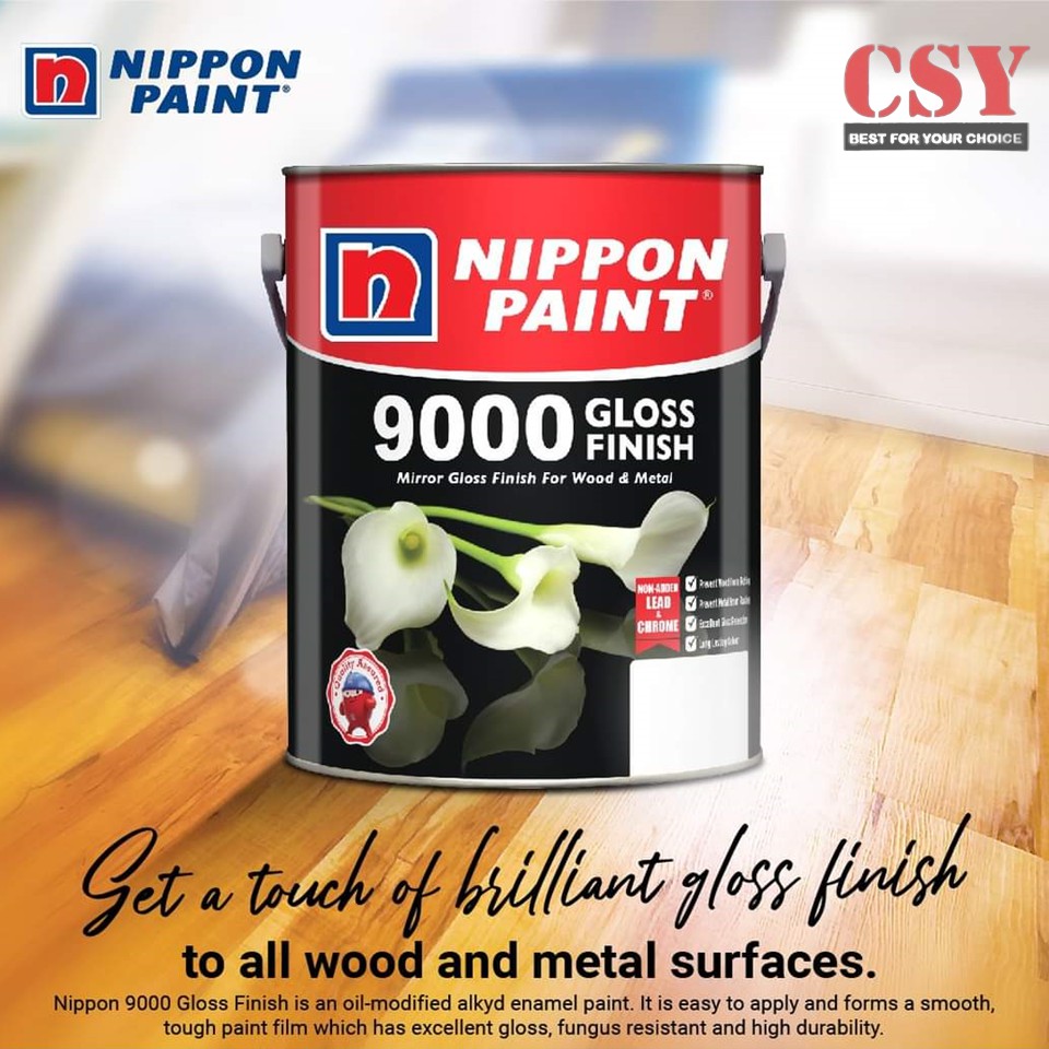 NIPPON PAINT 9000 Gloss Finish 1Liter / Cat Kayu Dan besi kilat tahan / Wood and Metal Gloss Paint