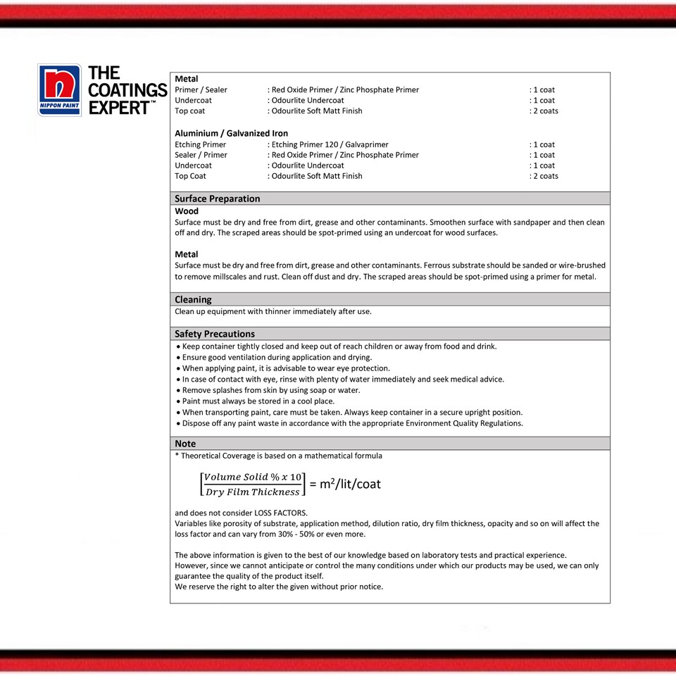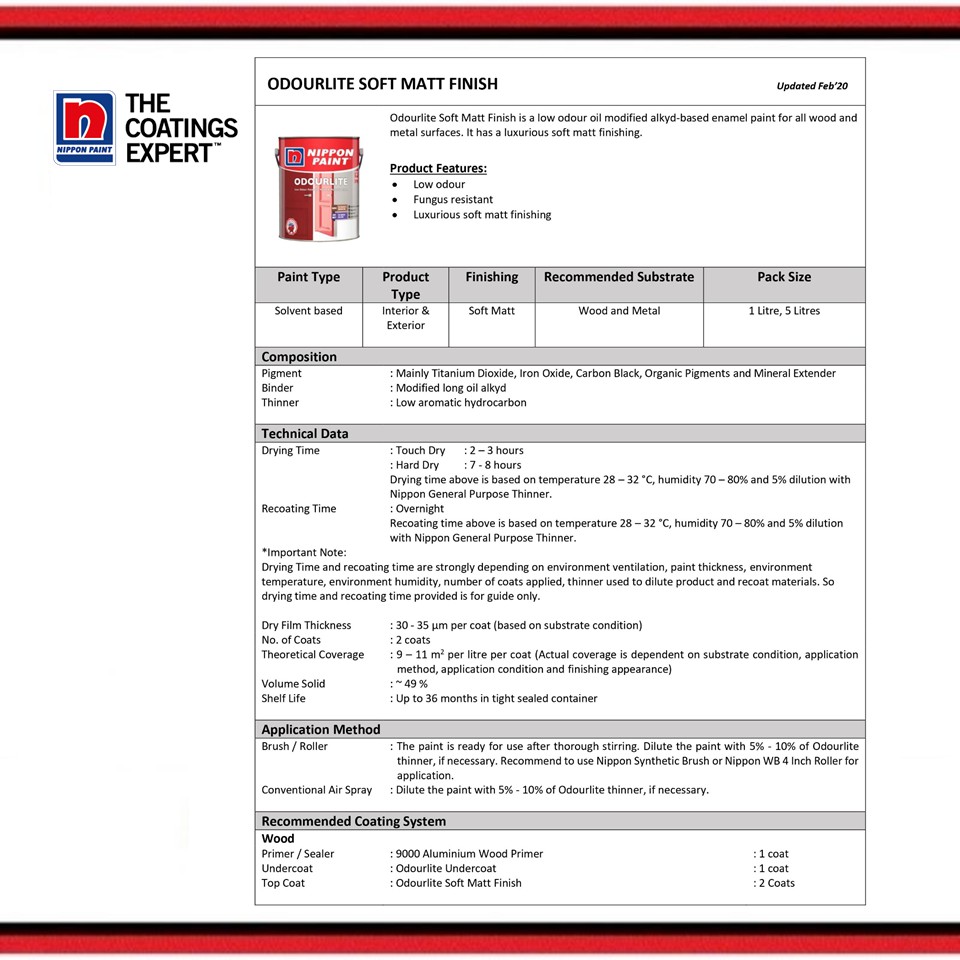 NIPPON PAINT Odourlite Soft Matt Finish 1 Liter