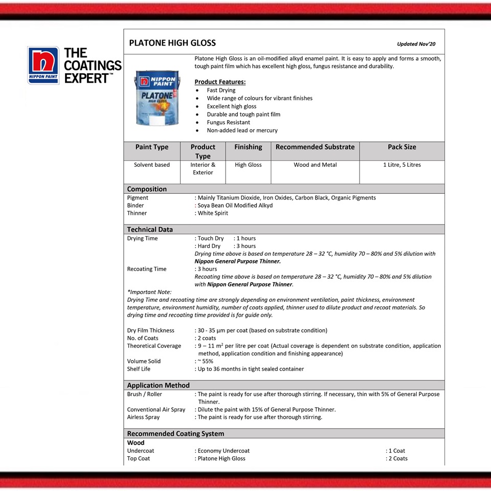 NIPPON PAINT Platone High Gloss/Matt 1Liter
