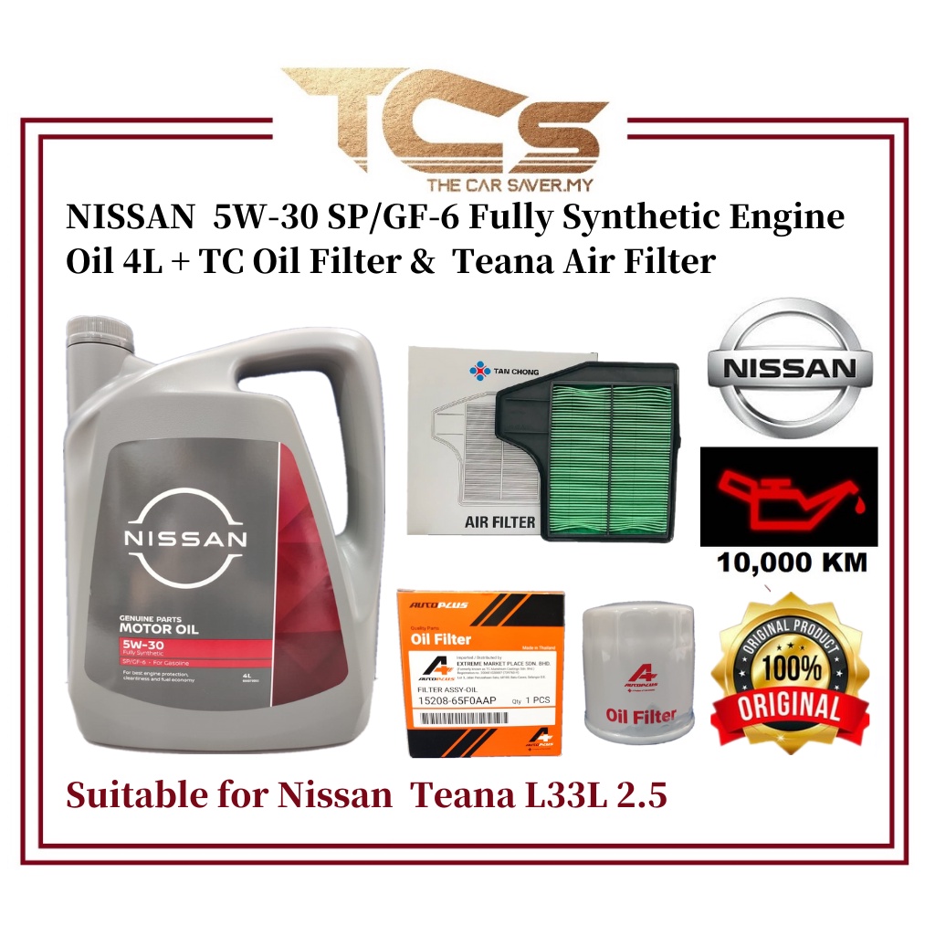 NISSAN 5W-30 SP/GF-6 Fully Synthetic Engine Oil 4L + TC Oil Filter & Teana Air Filter