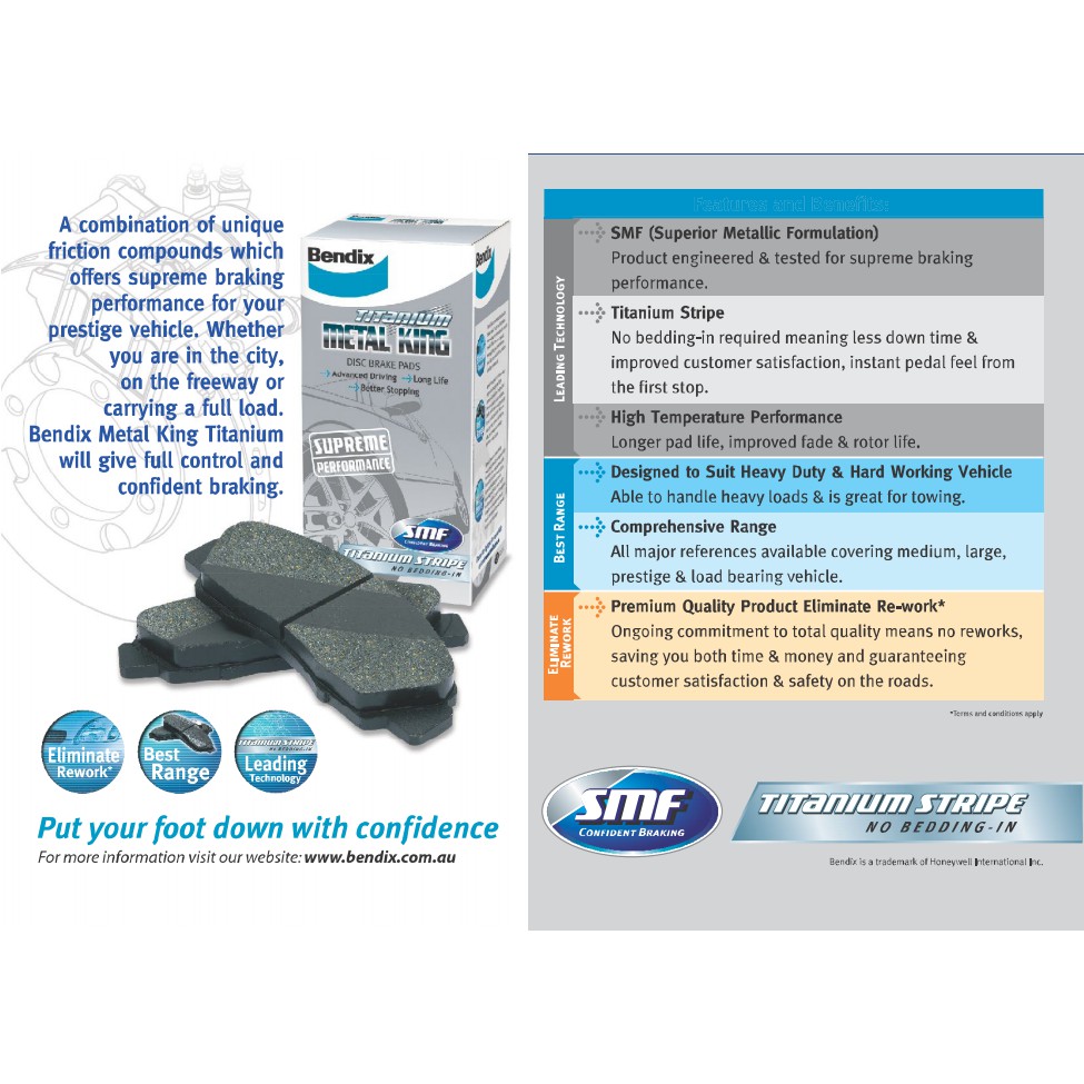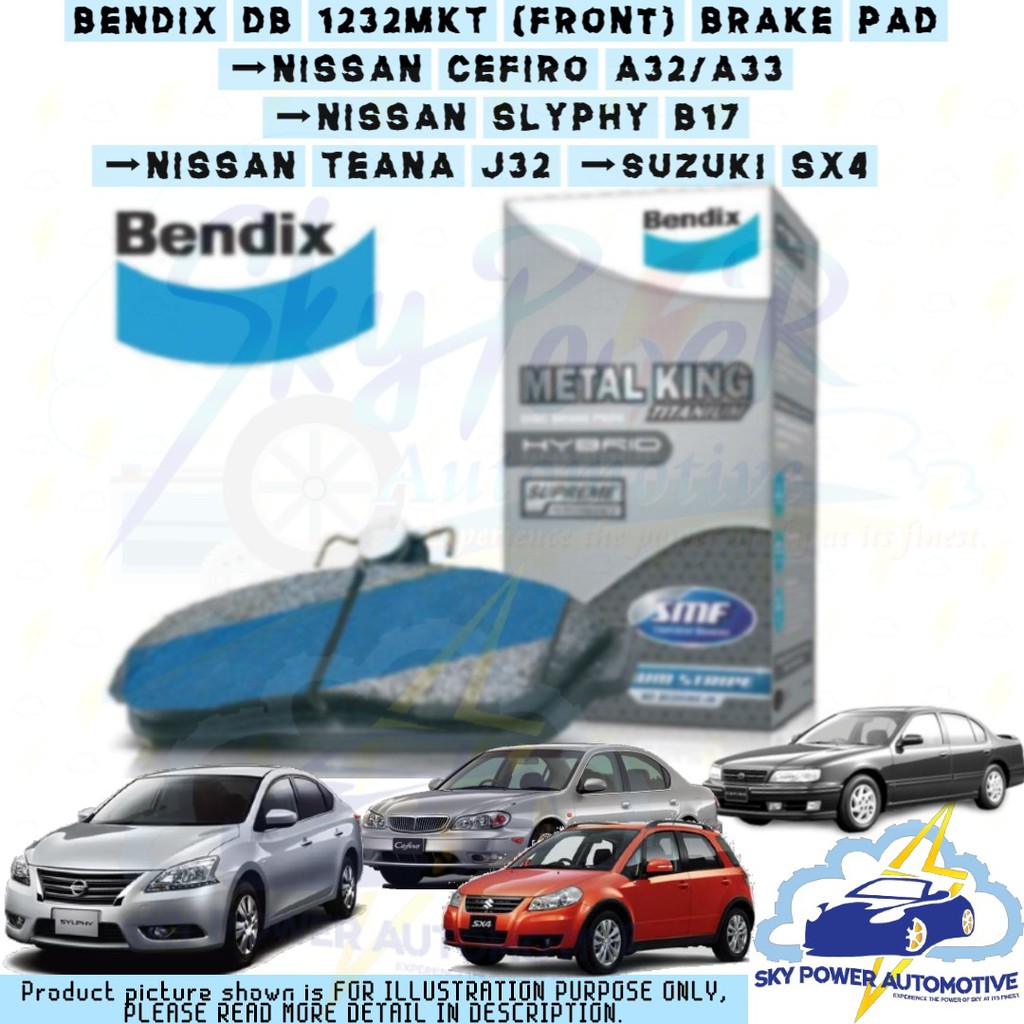 NISSAN CEFIRO A32/A33 / SYLPHY B17 / TEANA J32 / SUZUKI SX4 FRONT DISC BRAKE PAD (DB1232MKT) BENDIX METAL KING TITANIUM